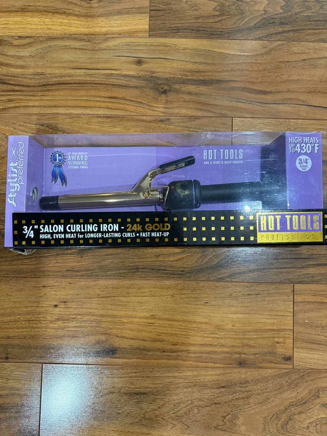 I'm selling a brand new Hot Tools 3/4" Salon Curling Iron with 24k Gold barrel! It's still in its original packaging. - High heat up to 430°F - 3/4" barrel size - High, even heat for longer-lasting curls - Fast heat-up This curling iron is perfect for creating beautiful, long-lasting curls. It's a great addition to any hair styling routine!