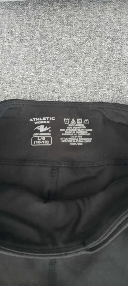 I'm selling a pair of Athletic Works black shorts. They're in great condition and perfect for workouts or everyday wear! They are a size L (10-12) and made of 88% polyester and 12% spandex. Never worn. No tags. Pick up only, e-transfer or cash.