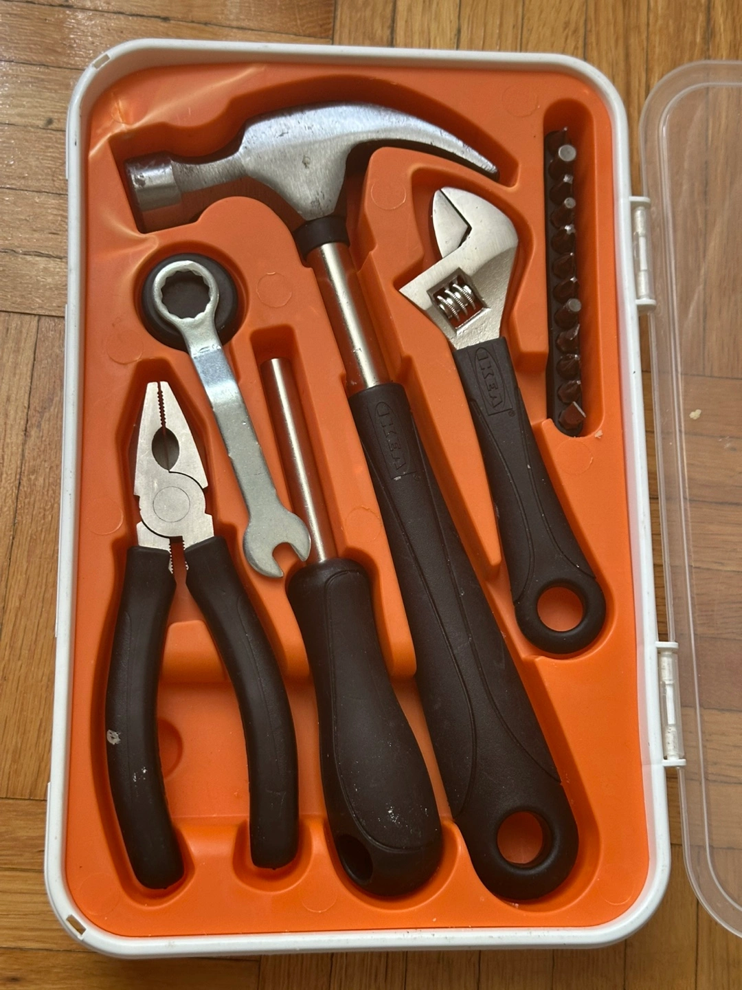 Selling an IKEA tool set that comes in its original case! It includes a variety of essential tools, perfect for small repairs and DIY projects around the house. Great for anyone just starting out or looking to add to their collection
