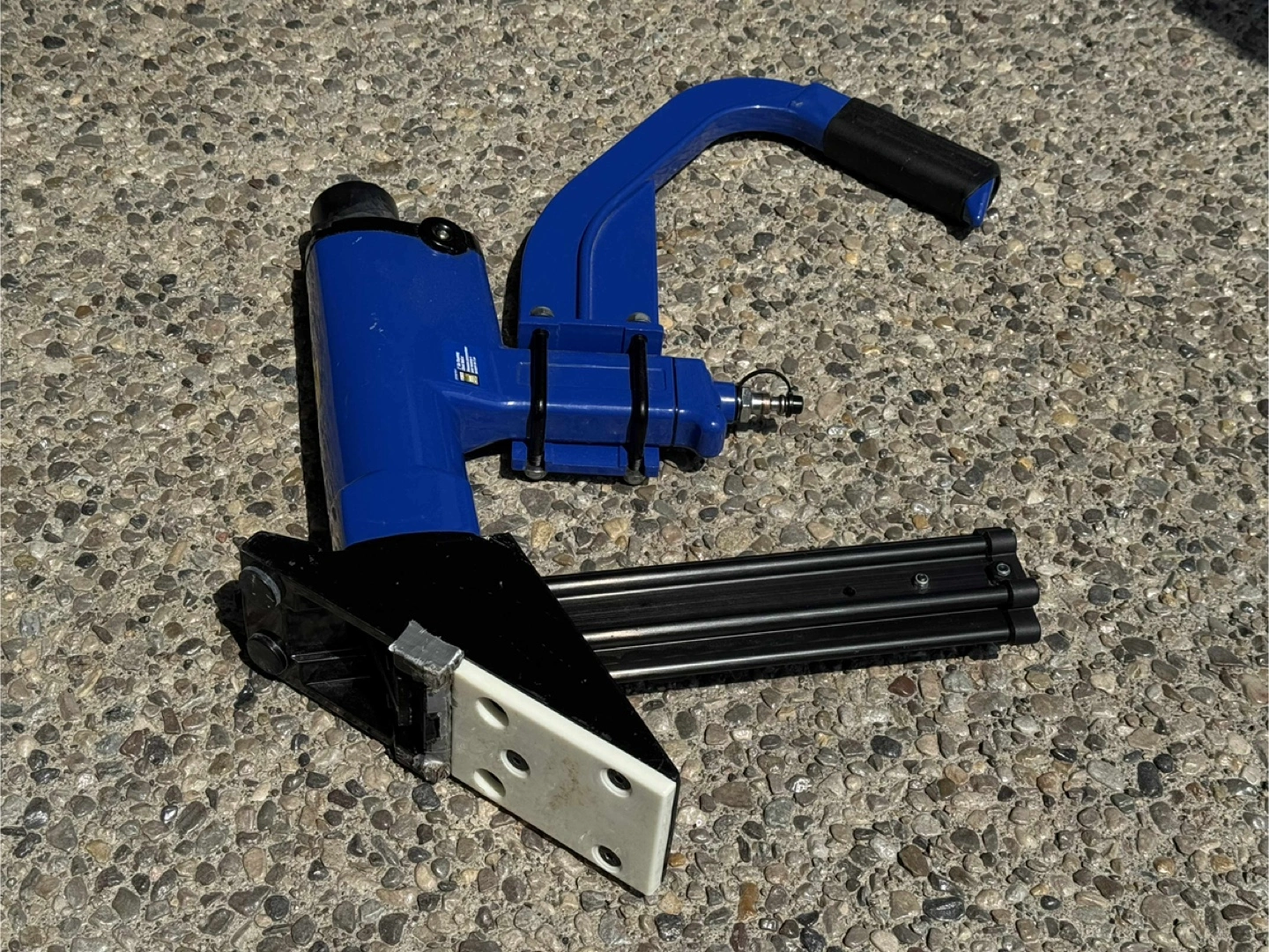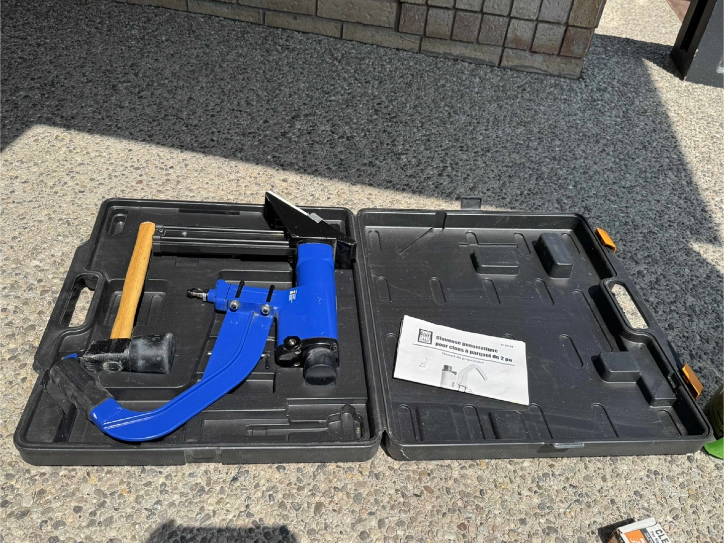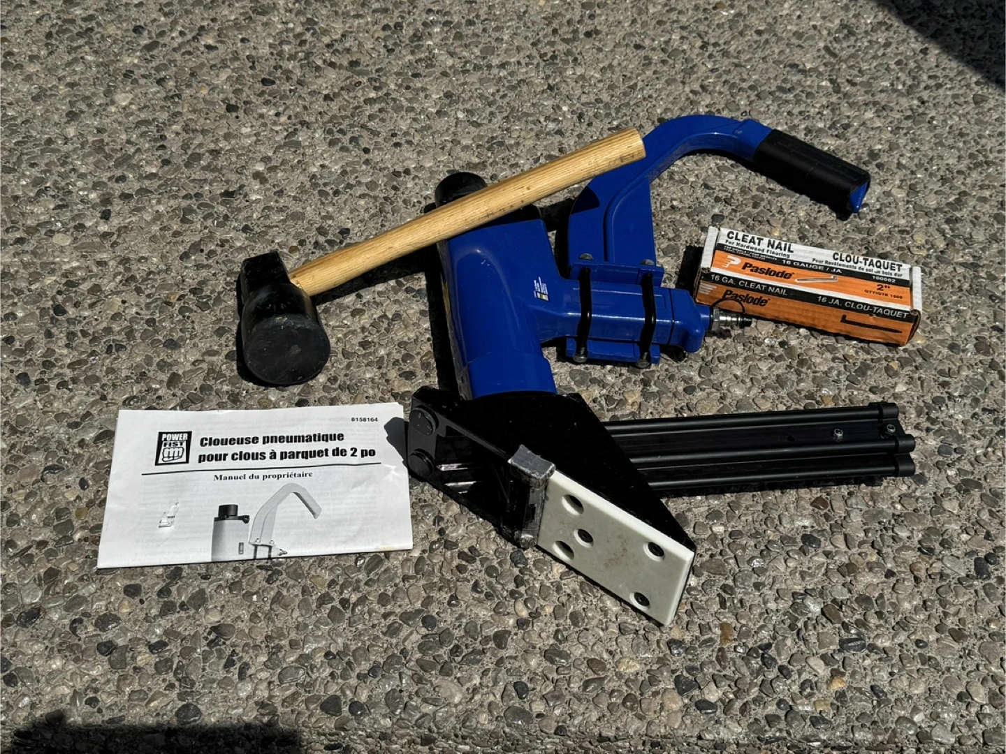 Selling a Powernail pneumatic flooring nailer in great condition! It comes with a mallet and a box of Paslode cleat nails. Also includes the original manual and carrying case. This nailer is perfect for installing hardwood floors quickly and efficiently. A great tool for any DIY enthusiast or professional contractor!