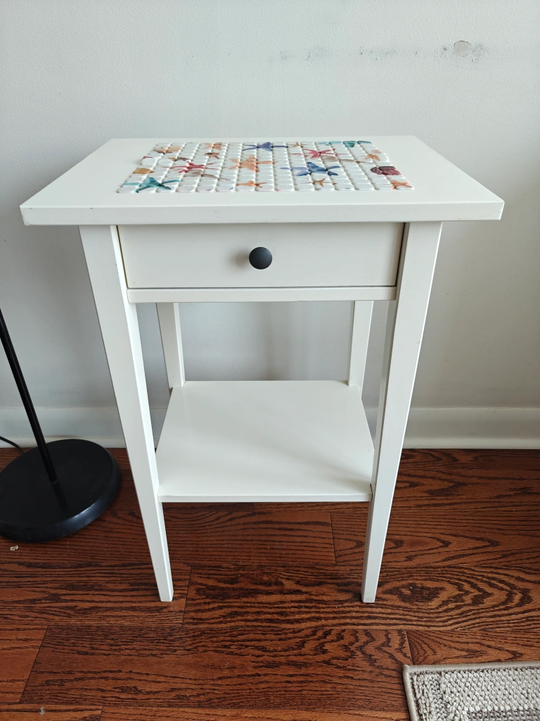 Selling a cute IKEA HEMNES Nightstand white side table! It has a drawer for storage and a shelf at the bottom.
