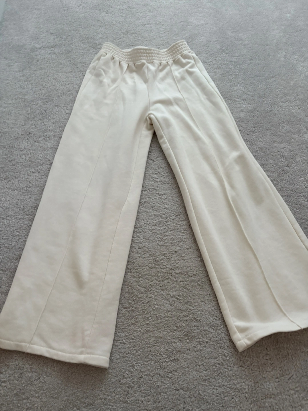 Cozy up with these Zara cream-coloured wide-leg lounge pants! They're super comfy and in great condition. Perfect for relaxing at home or running errands around town. Size small