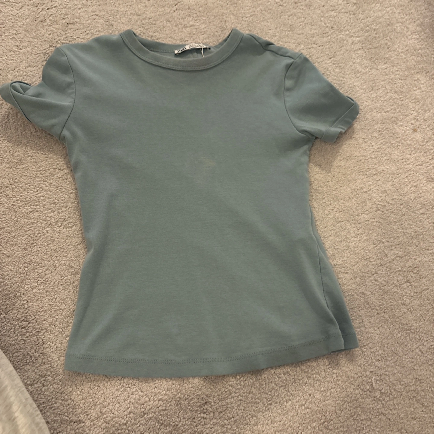 Here's a cute Zara t-shirt in a lovely blue colour. It's a size small and made in Bangladesh. Perfect for casual wear!