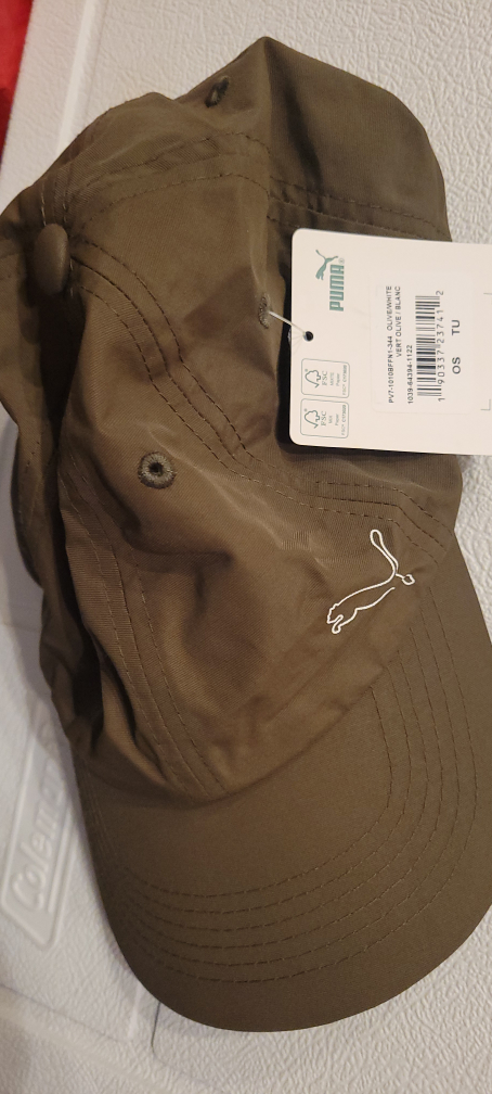 Stylish olive green Puma cap. It's in great shape and ready for a new owner. One size fits all (OS).