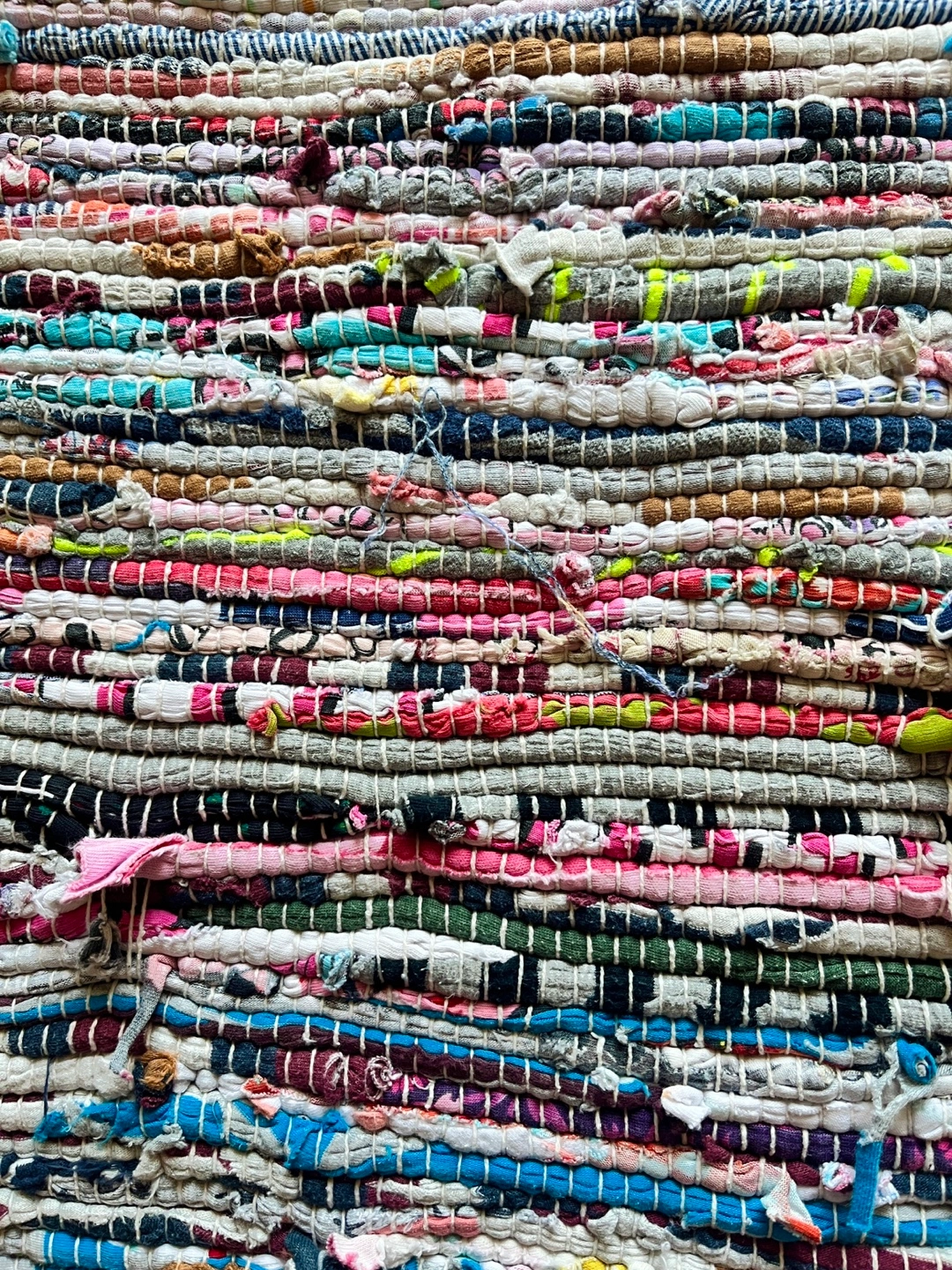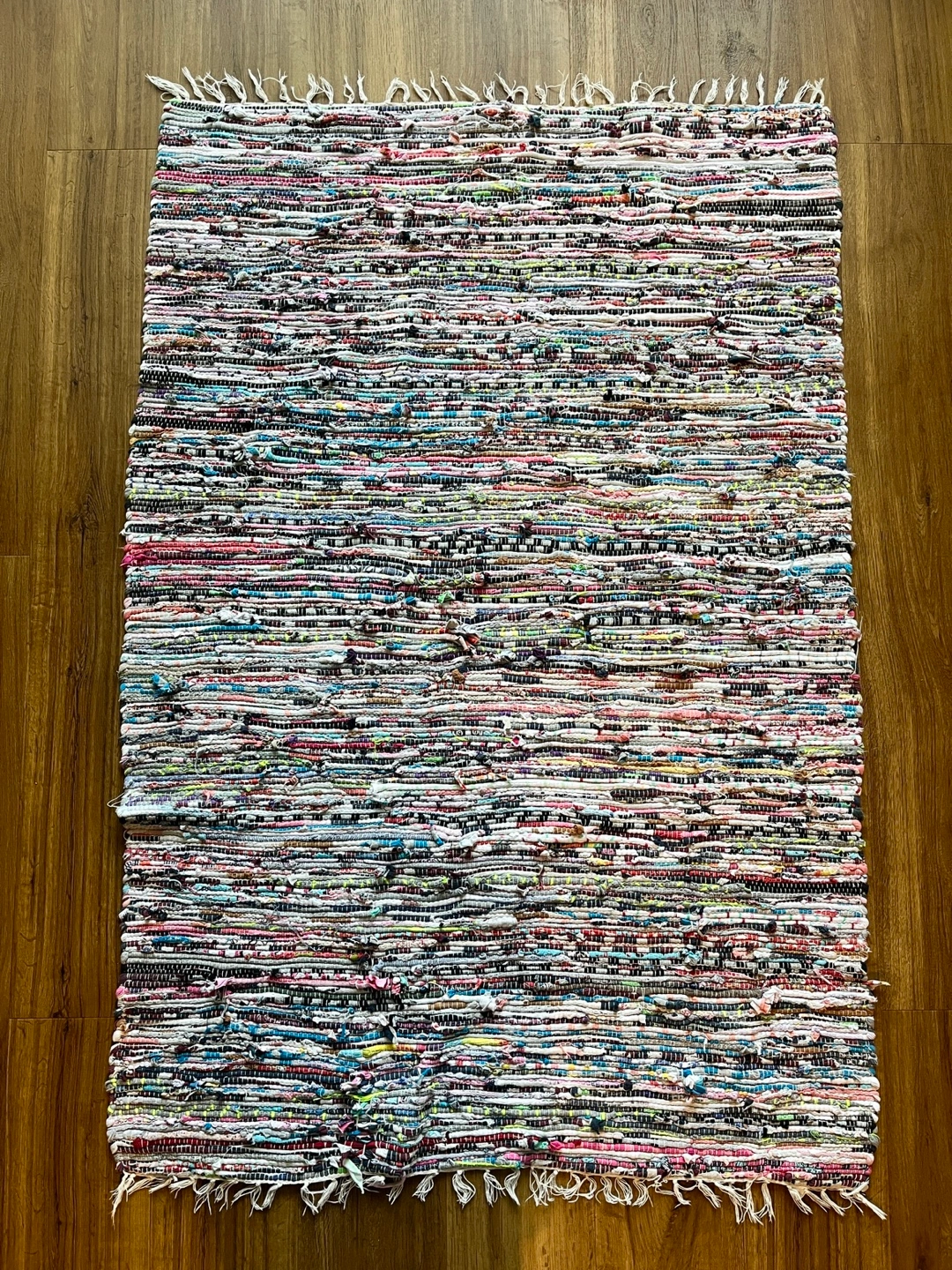 Rag rug with a variety of colours. It would look great in any room. It's in good condition and ready for a new home!