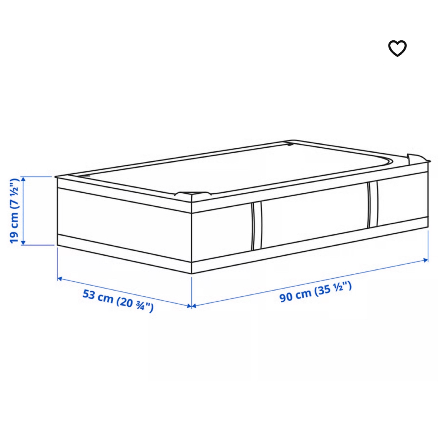 The dimensions are 90x53x19 cm (35 ½x20 ¾x7 ½ ")
