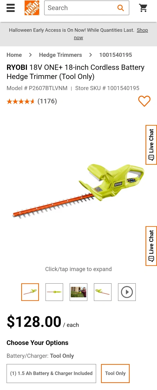 Selling a Ryobi 18V ONE+ 18-inch Cordless Battery Hedge Trimmer. It's in good, working condition and ready to help with your yard work! Originally, it retailed for $128 at Home Depot.