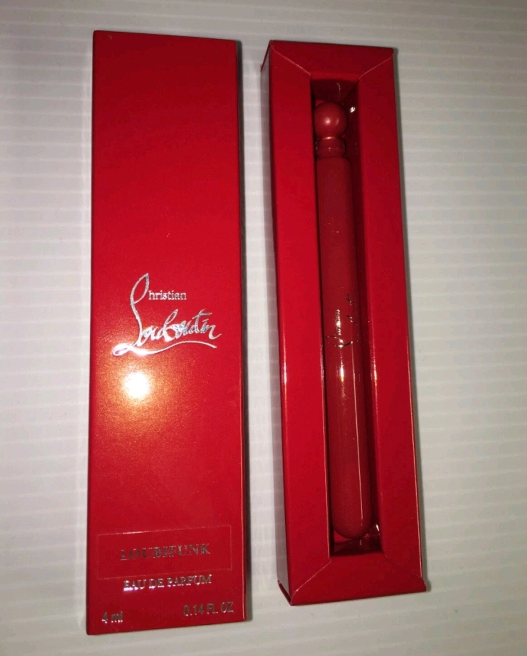 Selling a Christian Louboutin Loubifunk Eau de Parfum. It comes in a 4ml bottle and includes the box. The perfume is a vibrant red colour and perfect for on the go