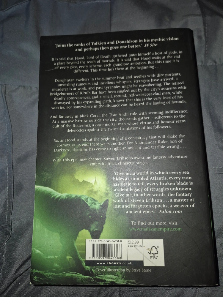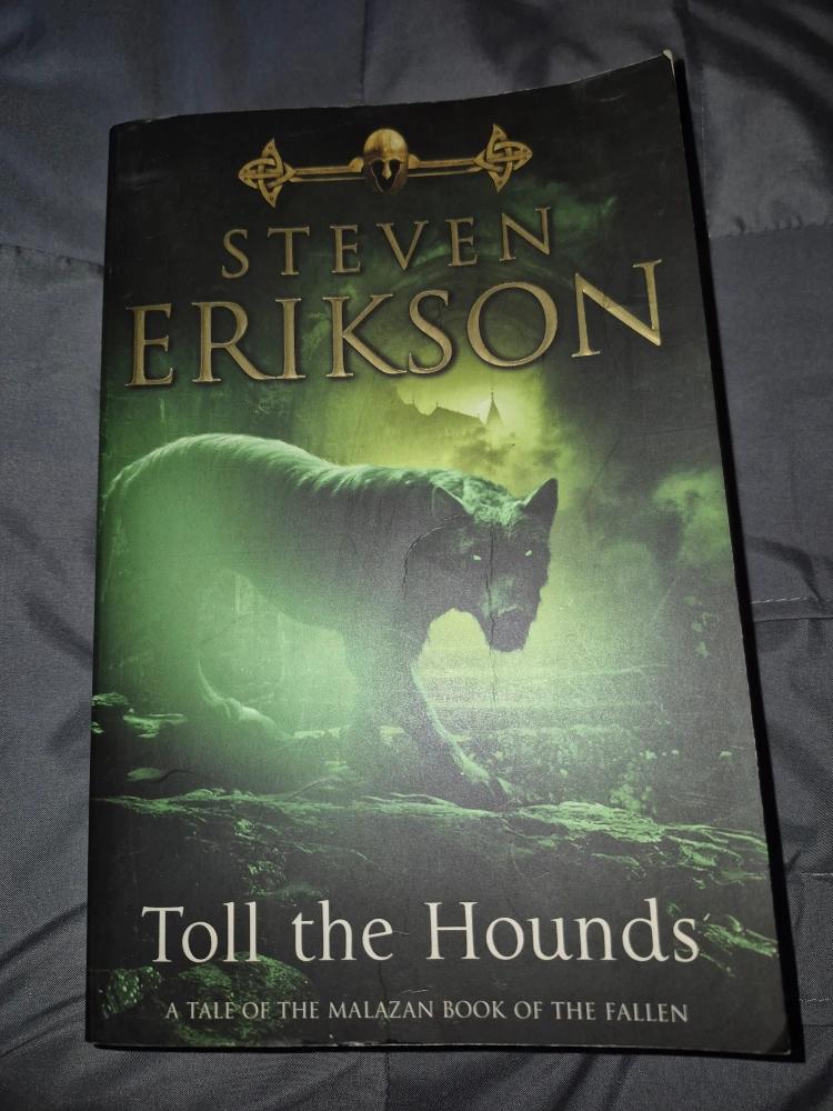Selling Toll the Hounds by Steven Erikson, part of the Malazan Book of the Fallen series! It's a tale set in a world of deep history and ancient struggles