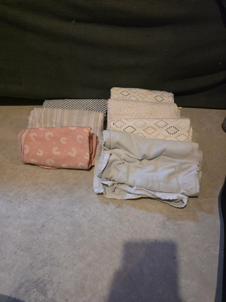 A collection of baby burp blankets in various patterns and materials. Great for adding warmth and comfort to your home!