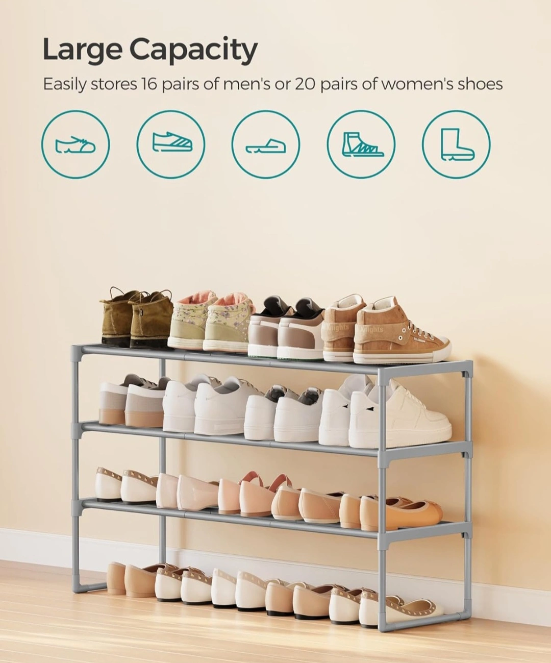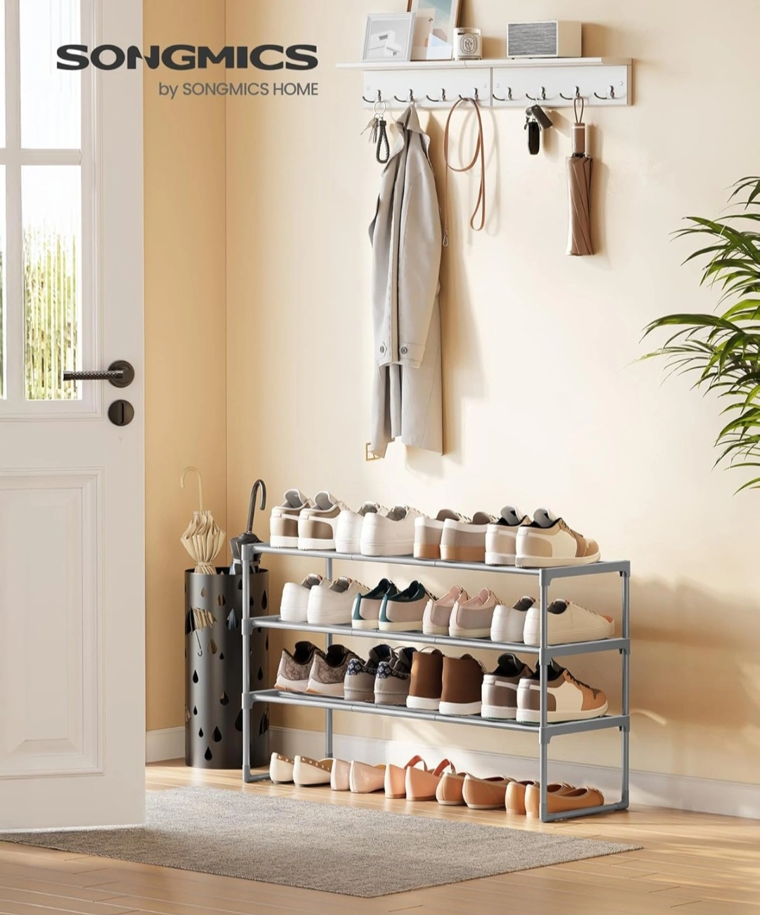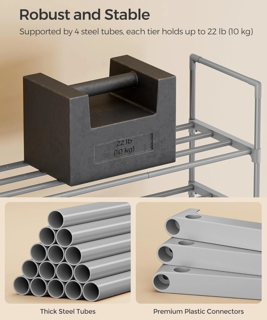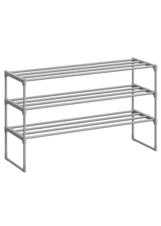 SONGMICS Shoe Rack, 3-Tier Shoe Organizer, Sturdy Storage Shelf, Upright or Upside Down, for 16-20 Pairs, Stackable, for Entryway, 30 x 92 x 55 cm, Gray ULSA303G01. (570)