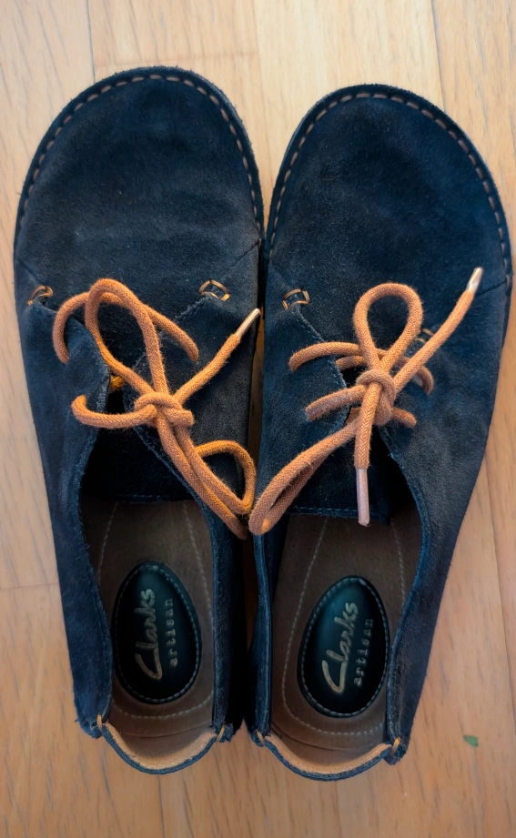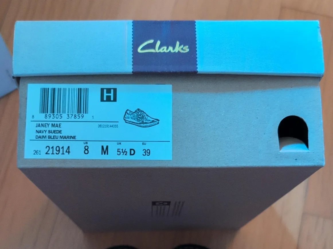 Selling a pair of Clarks Janey Mae shoes in navy suede. They are a size 8. Comes with the original box! gorgeous shoes that i wish fit me!