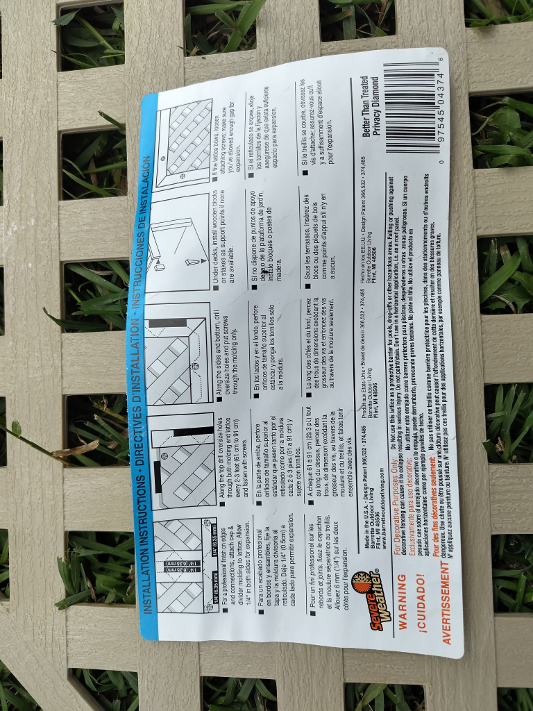 Selling brand new Privacy Diamond lattice panels! bought too much. Great for garden projects, fencing, or adding privacy to your deck or patio.
