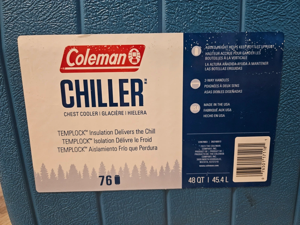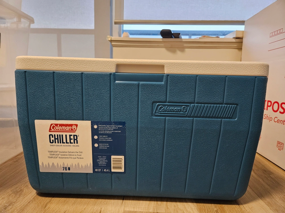 95I'm selling a Coleman Chiller cooler in great condition! It's a 48 quart (45.4L) cooler, perfect for keeping your drinks and snacks cold on those hot summer days. The cooler is blue and white and features TEMP/LOC insulation, which helps keep your items cold for longer. It's ready for your next picnic or camping trip! Smoke and Pet free home. Cash and pick up only.