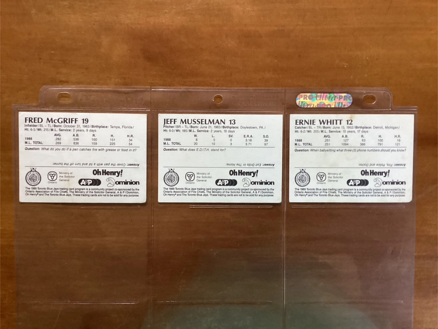 $10.00 for all 3 cards - ERNIE WHITT, JEFF MUSSELMAN & FRED McGRIFF - Shipping available - Located at Pape ave & Cosburn ave Toronto - Call Patrick @ 416-930-8338. - Thanks & check out my other posts