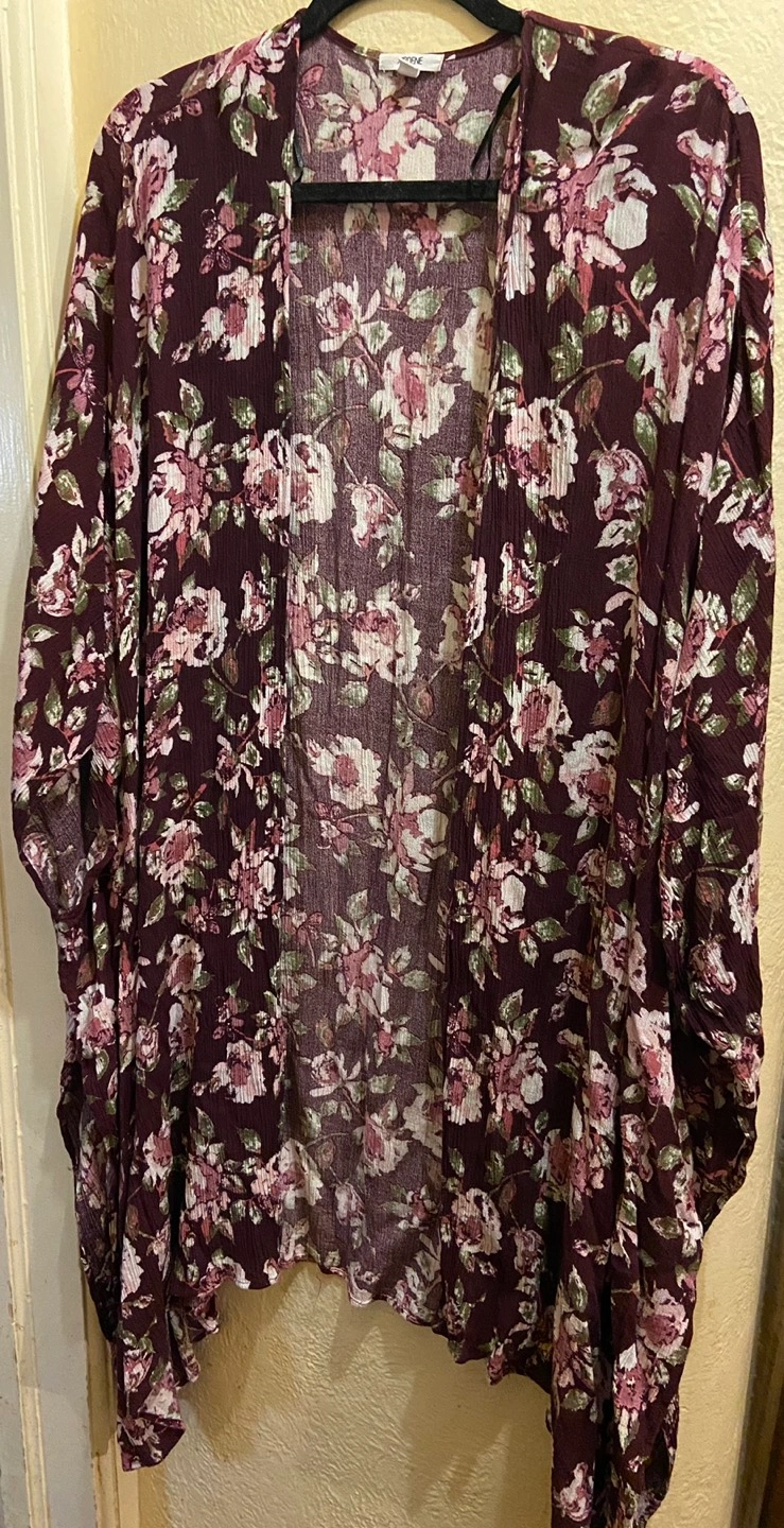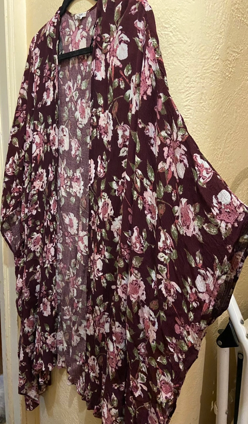 306Description Condition- has been gently used. And hardly worn. In great condition. Has no rips, stains. No flaws Colour- floral burgundy Size- OS Length is long with short sleeves Payment- Prefer exact Cash If not Interac e-Transfer is accepted No Refunds / Exchange No try ons, No trading No holds. Only with a Interac e-transfer payment has been deposited. All purchases are Finally Sale From a Smoke Free home Price- $10