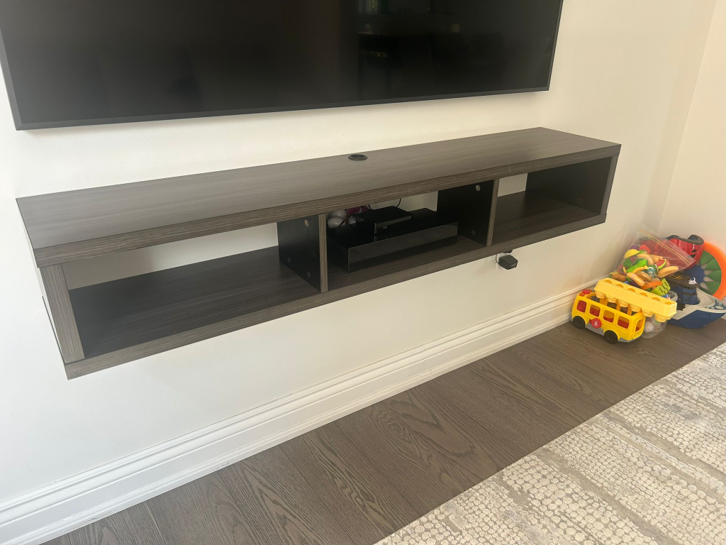Looking to sell this floating media console. It's perfect for mounting under your TV to store media devices and keep things tidy. It's in great shape and ready for a new home!