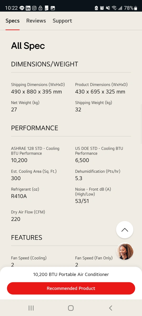 Keep cool this summer with an LG portable air conditioner! This unit has a cooling capacity of 10,200 BTU and is perfect for cooling spaces up to 300 sq ft.