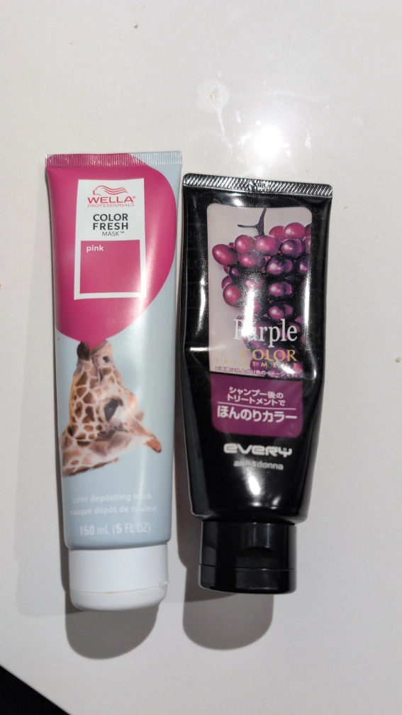 Selling two hair colour masks! One is Wella Color Fresh Mask in pink, and the other is Every Color in purple. used about half of both. take both for $15