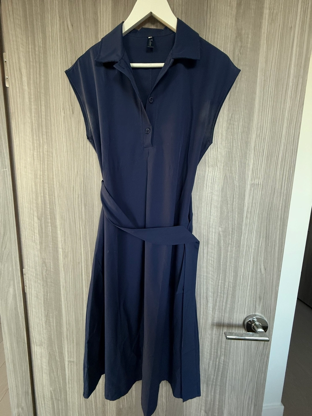 23I have a navy blue dress for sale. It's a size L and has a belt. It's in great condition and ready for a new home!