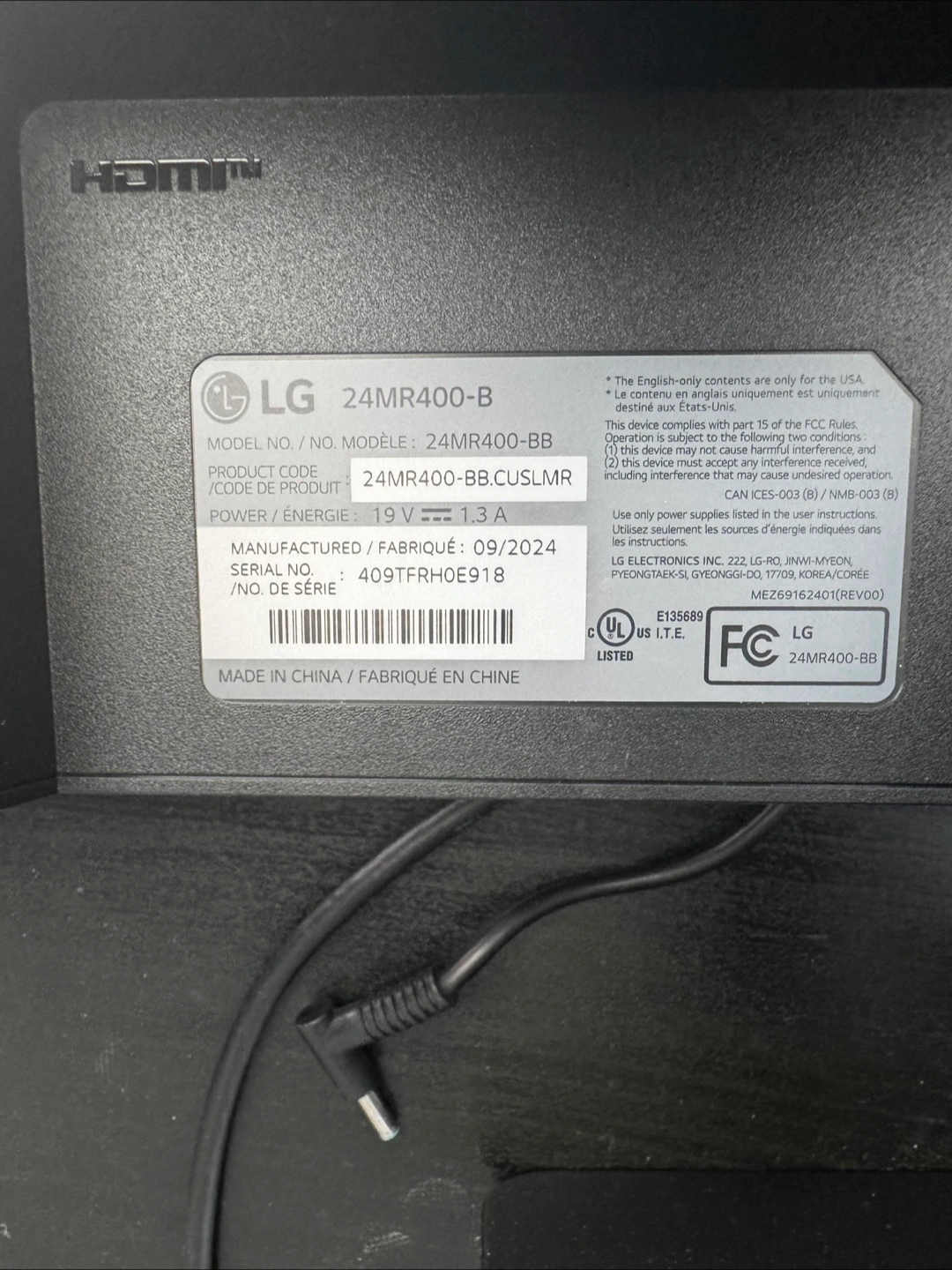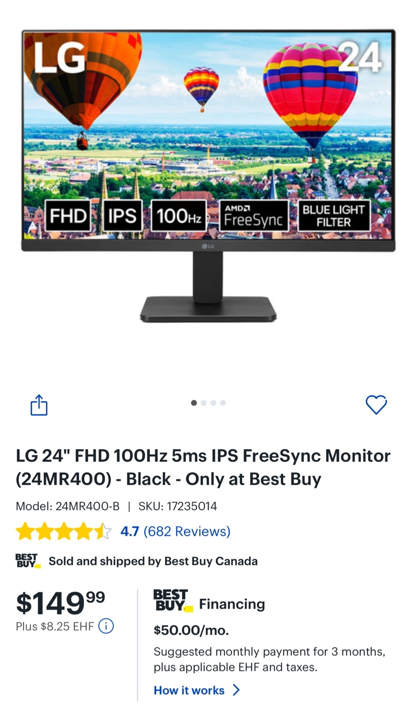 Selling an LG 24" FHD 100Hz monitor. Key features: - FHD IPS display - 100Hz refresh rate - AMD FreeSync - Blue Light Filter Model number: 24MR400-B