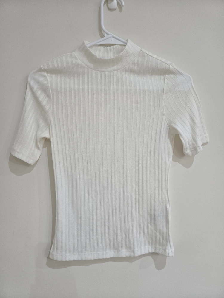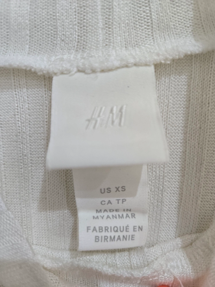 White ribbed mock neck top from H&M. It's a size XS and made in Myanmar. It's in great condition and ready for a new home Great for office wear