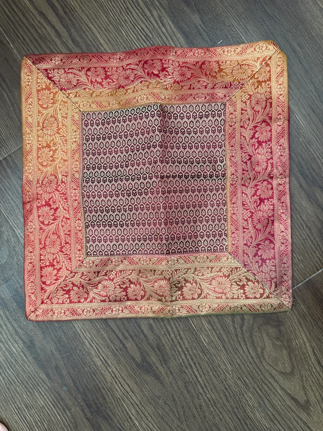 628This is a decorative pillow cover with a beautiful pattern. It features a floral design around the edges and a geometric pattern in the center. Perfect for adding a touch of elegance to your home decor