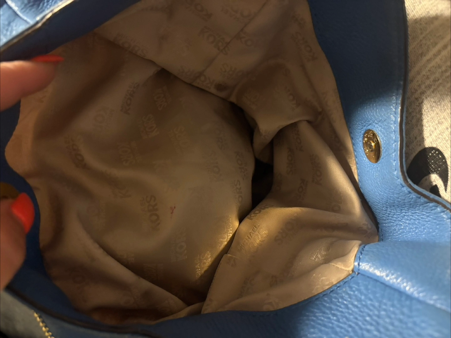 Selling a beautiful blue leather shoulder bag from Michael Kors. It's in good condition and has a stylish design. Perfect for everyday use!