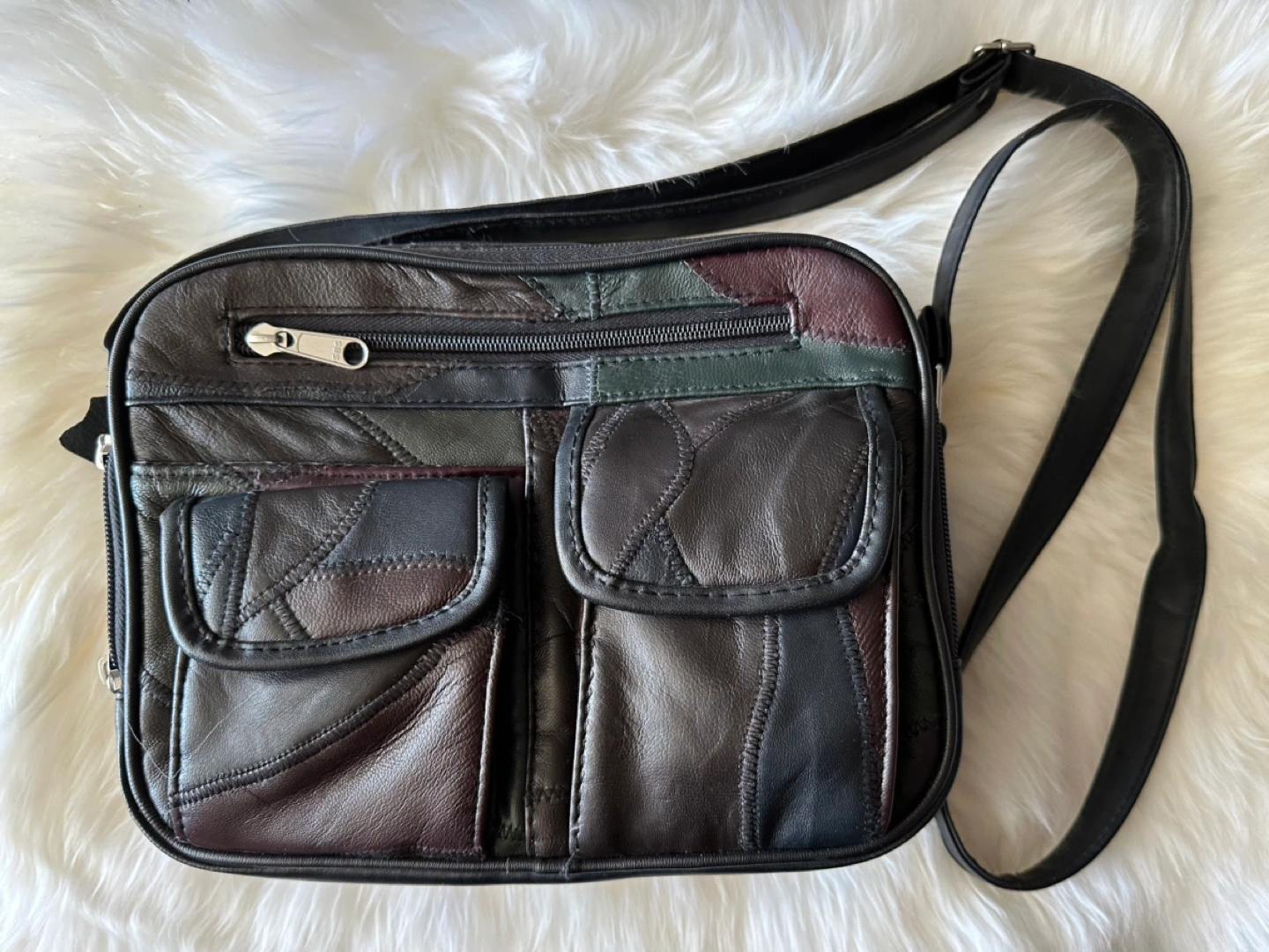 With multiple compartments & pockets, you'll never worry about sacrificing space. Patchwork design. Adjustable shoulder strap. Excellent condition. Retail price is $55.