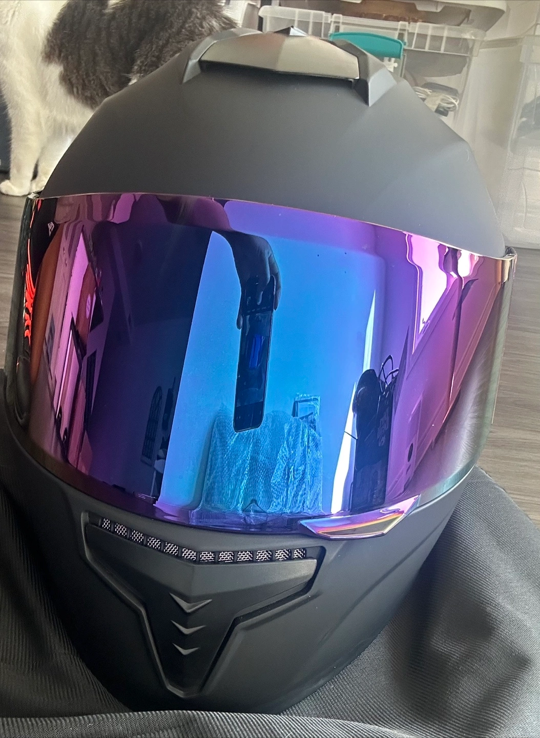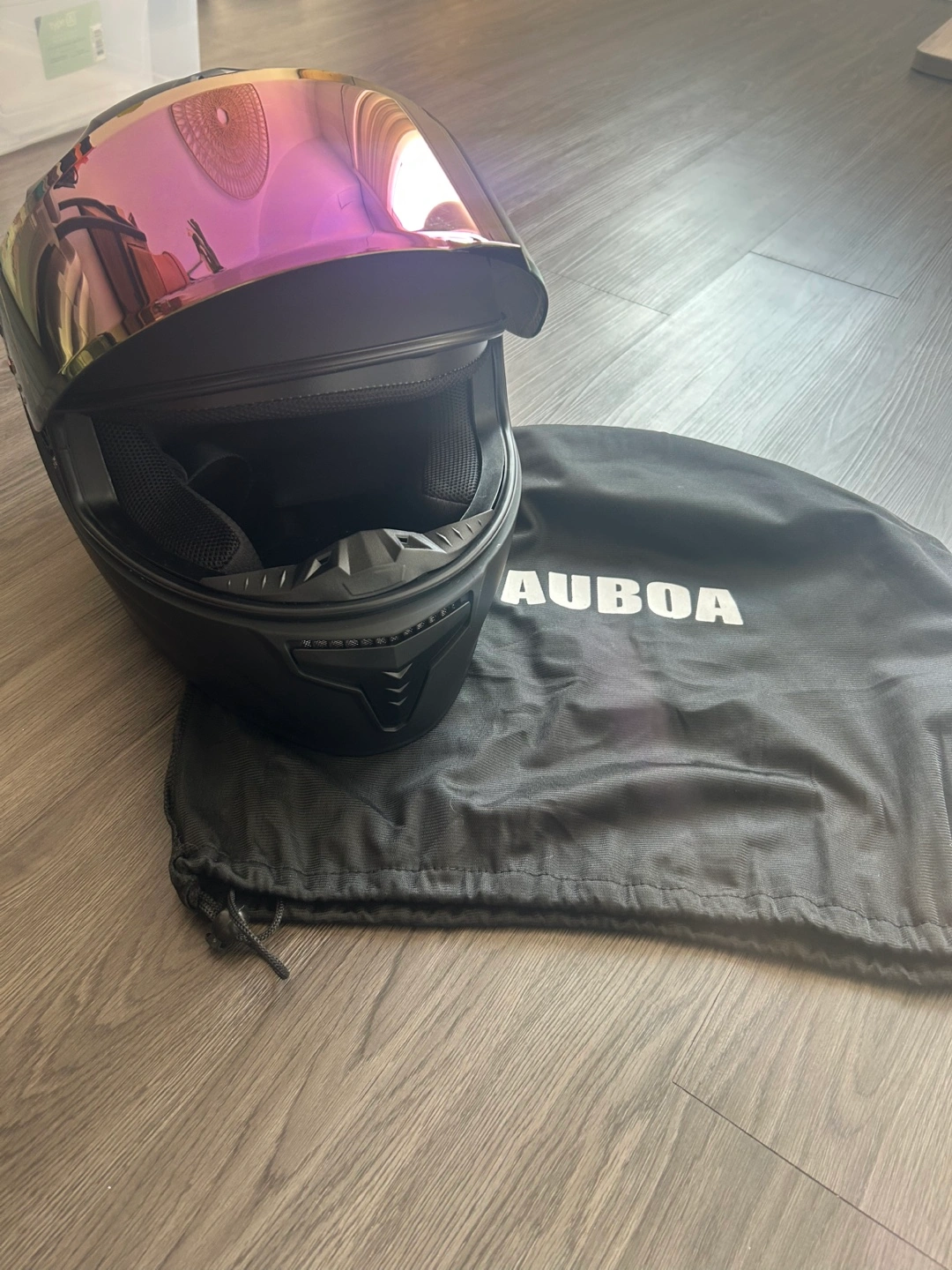 Selling an AUBOA MD-813 motorcycle helmet in size small. The manufacturing date is 2024 June. It comes with a bag.