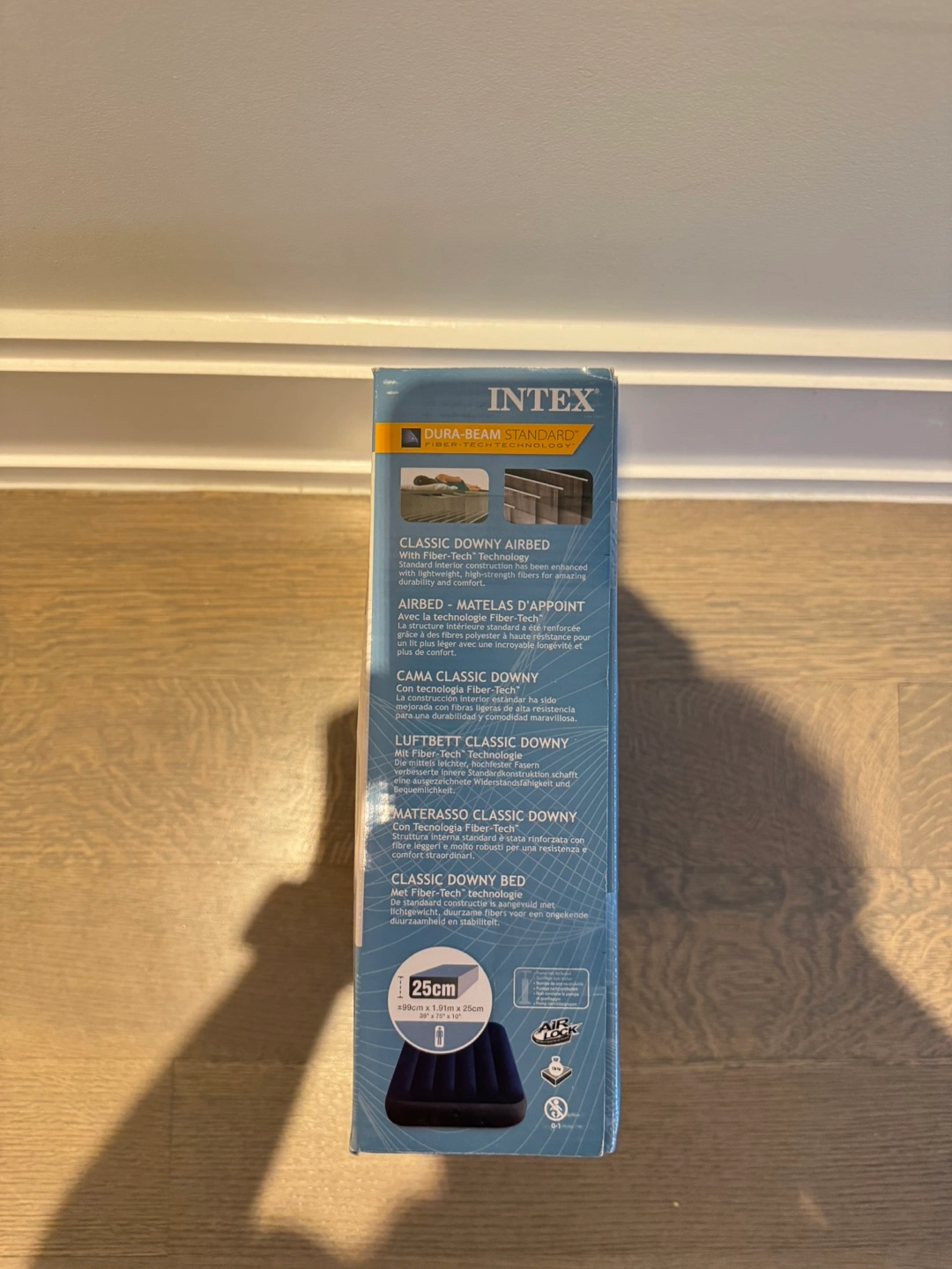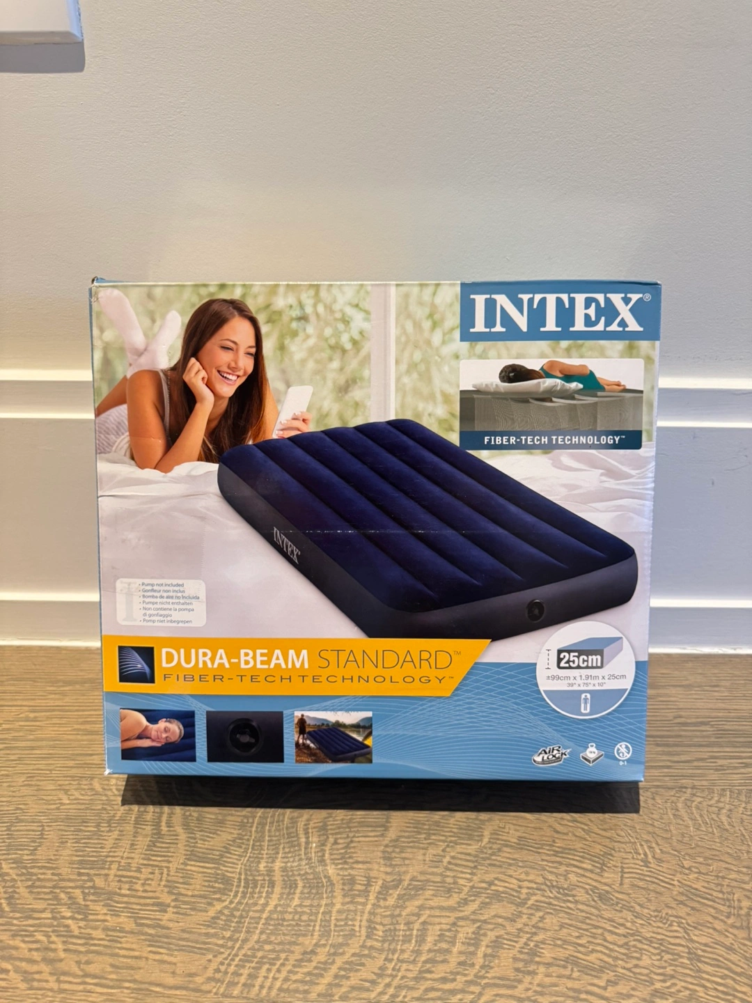 Selling a brand new Intex Dura-Beam Standard Classic Downy Airbed! It features Fiber-Tech Technology for enhanced comfort and durability. The airbed is 25cm x 99cm x 1.91m.