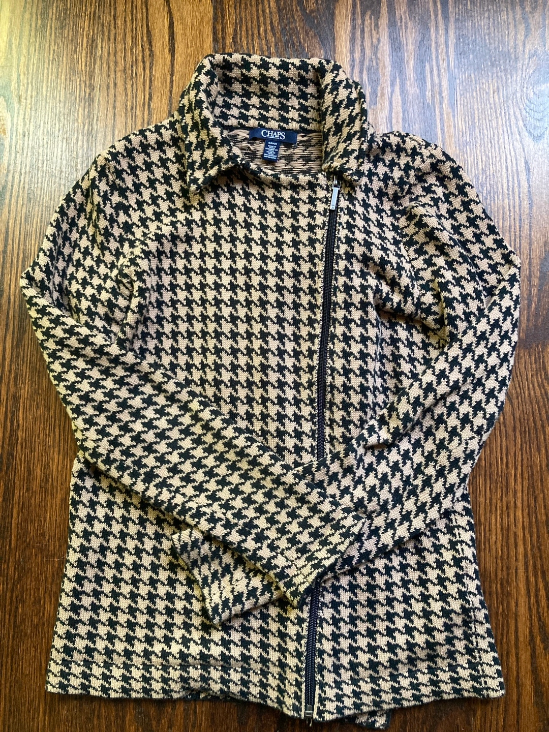 429Lovely classic design women’s zip up top. Can be worn as a sweater or light jacket. Quite warm and perfect for fall. Size small. In great condition. *Cash only, please*