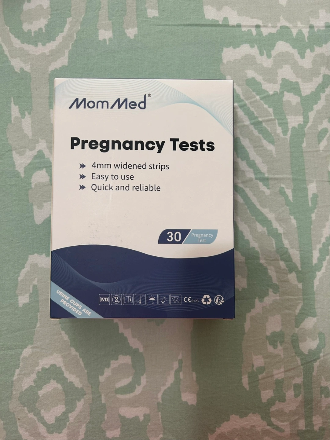 Selling a box of MomMed Pregnancy Tests. This pack includes 25 individual tests that are 4mm wide and easy to use. They are also quick and reliable. Urine cups are provided. Expiry Date: 2025 December 31