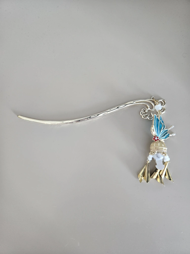 This is a beautiful hair pin with a butterfly design. It's in great condition and would make a lovely addition to any hair accessory collection! Lights up