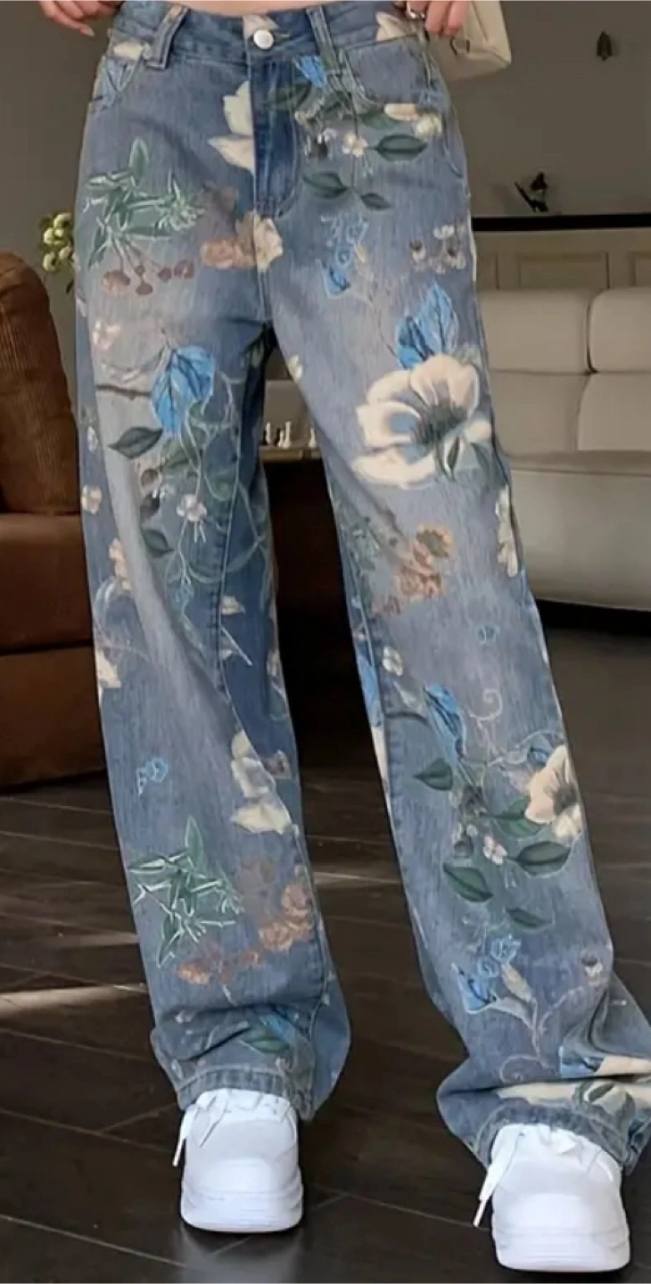 Floral Print Jeans