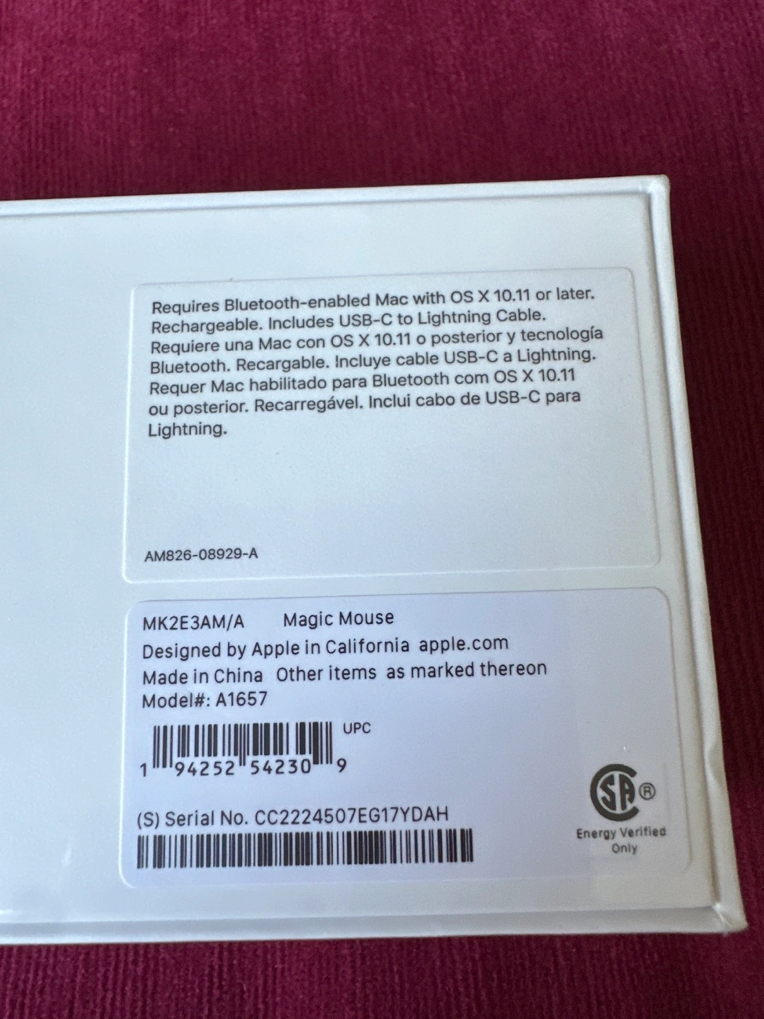 Selling a brand new Apple Magic Mouse! It's still in its original packaging. - Requires Bluetooth-enabled Mac with OS X 10.11 or later - Rechargeable, Includes USB-C to Lightning Cable - Model: A1657 - Comes with the box
