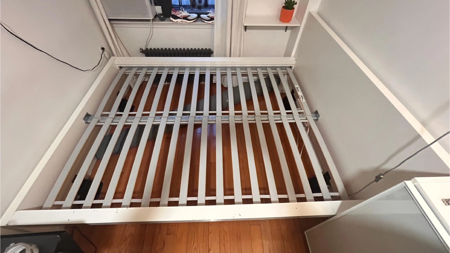 Selling a full-size IKEA MALM bed frame in good condition! The frame is white and measures approximately 83 1/8" x 66 1/8". It's a sturdy and reliable bed frame, perfect for any bedroom.