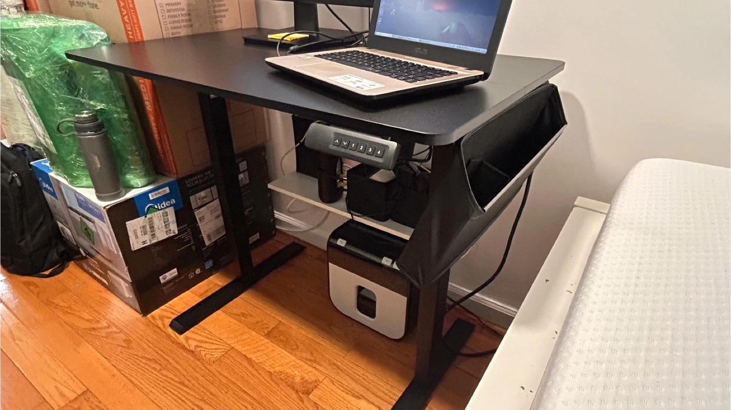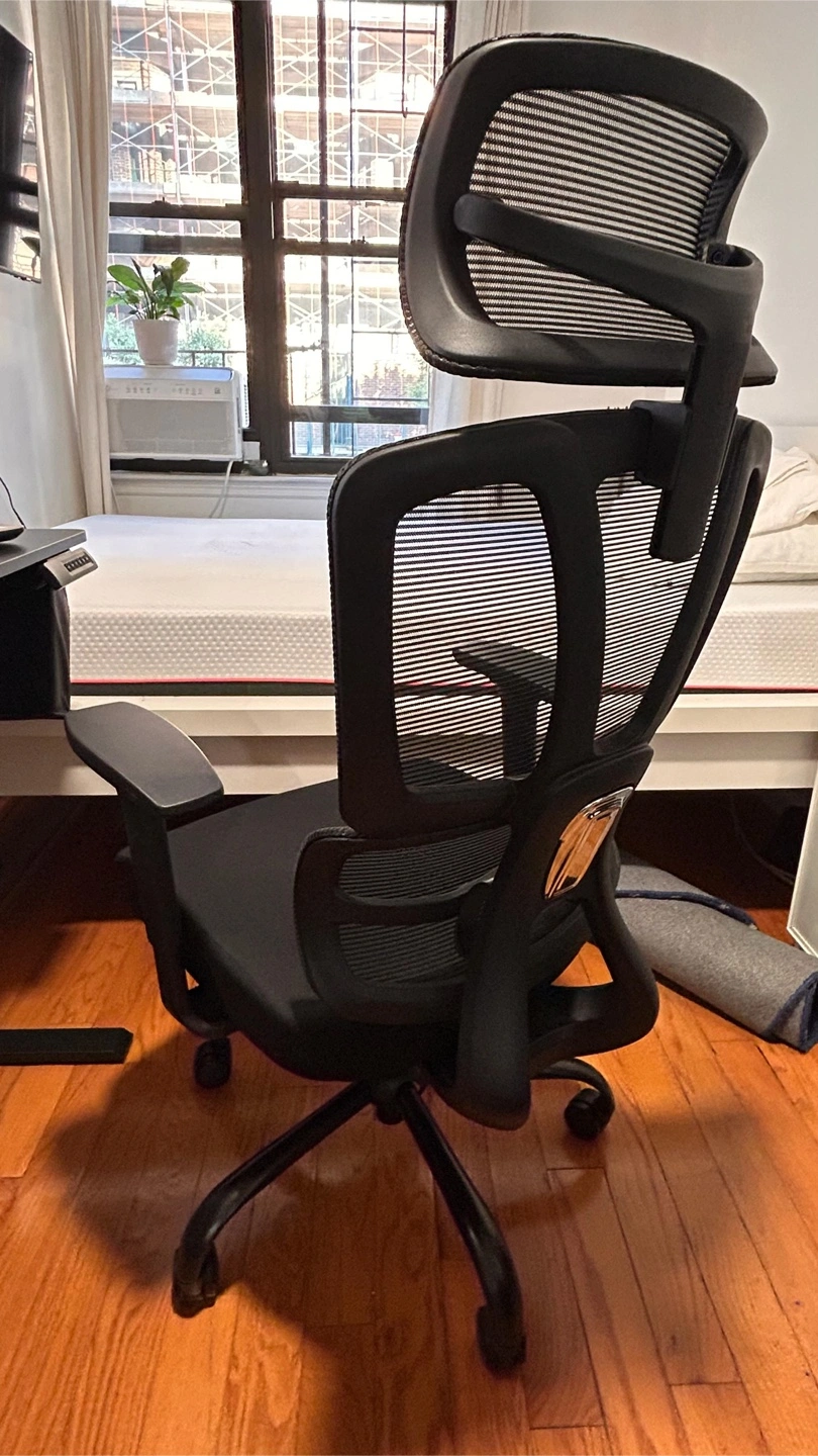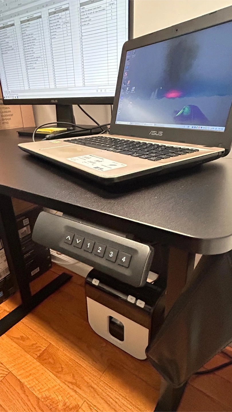 Height Adjustable Electric Standing Desk, 40 x 24 and ergonomic home office chair (black). Both purchased new in April 2024.