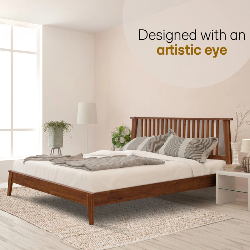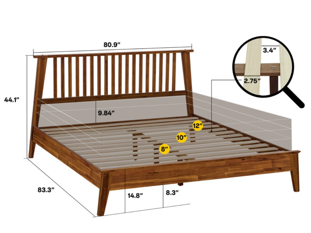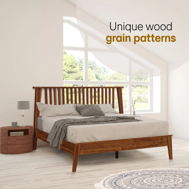 126This wooden platform bed frame features a warm and inviting feel. It's designed with an artistic eye and has unique wood grain patterns. The dimensions are approximately 80.9" wide, 83.3" long, and 44.1" high.