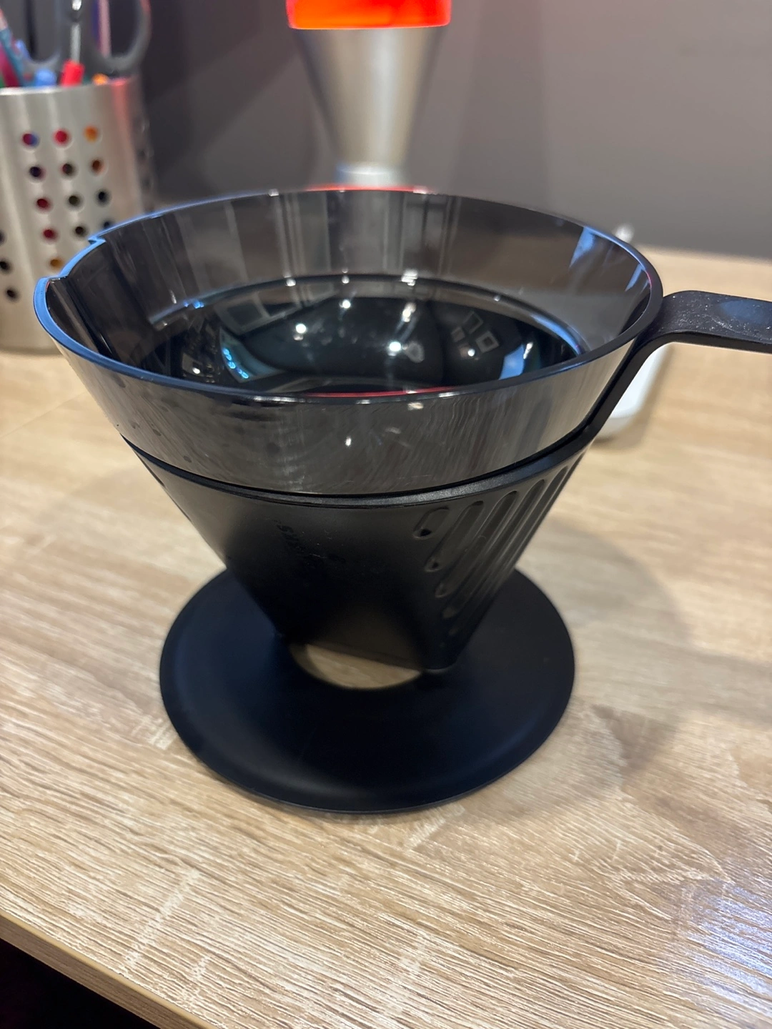 Selling a black plastic coffee pour over. It's in great shape and ready for a new home. Perfect for making your morning coffee!