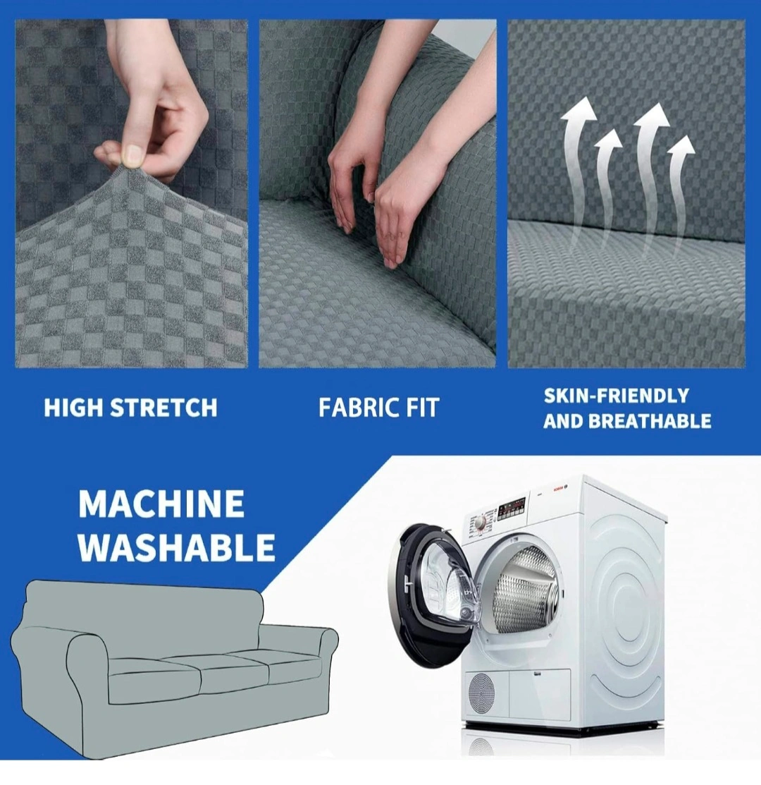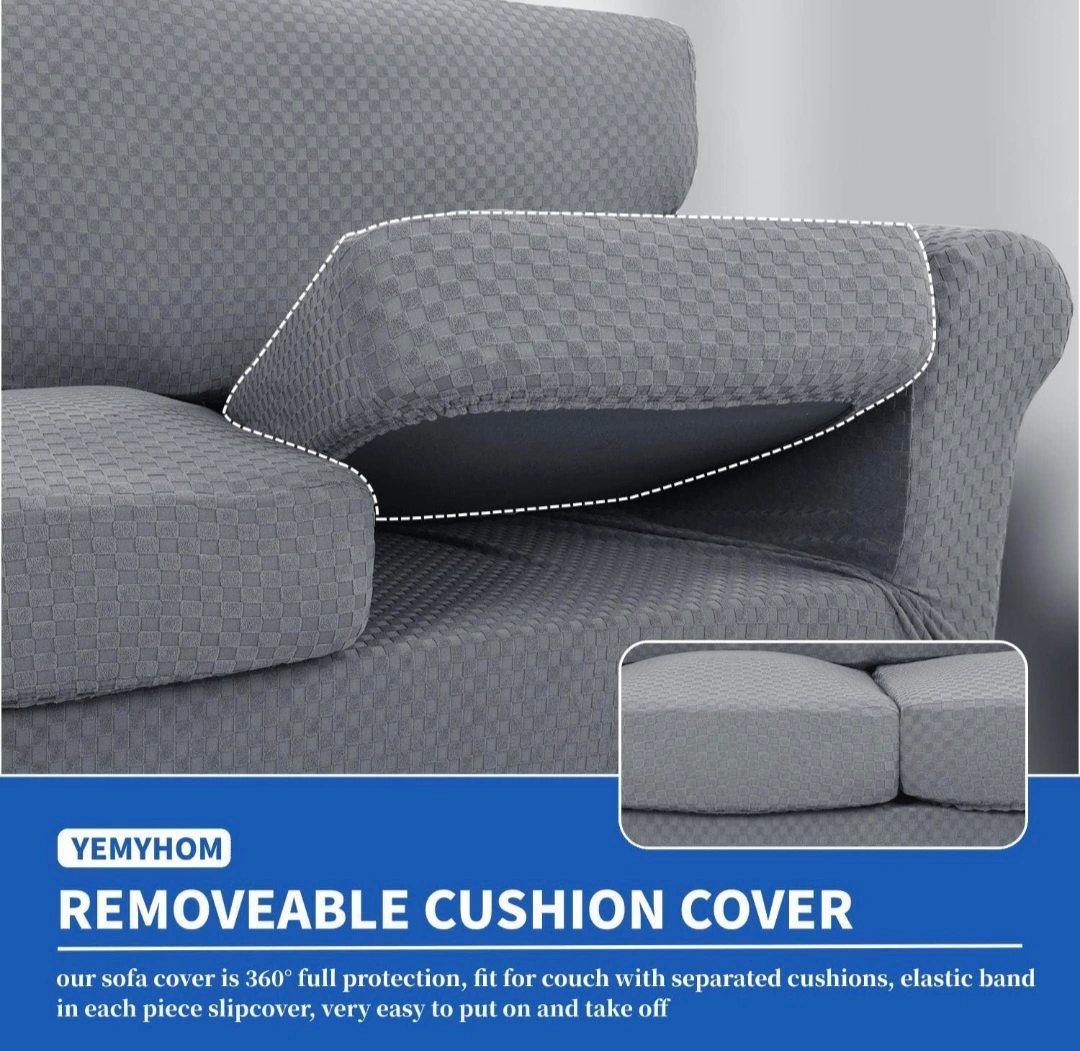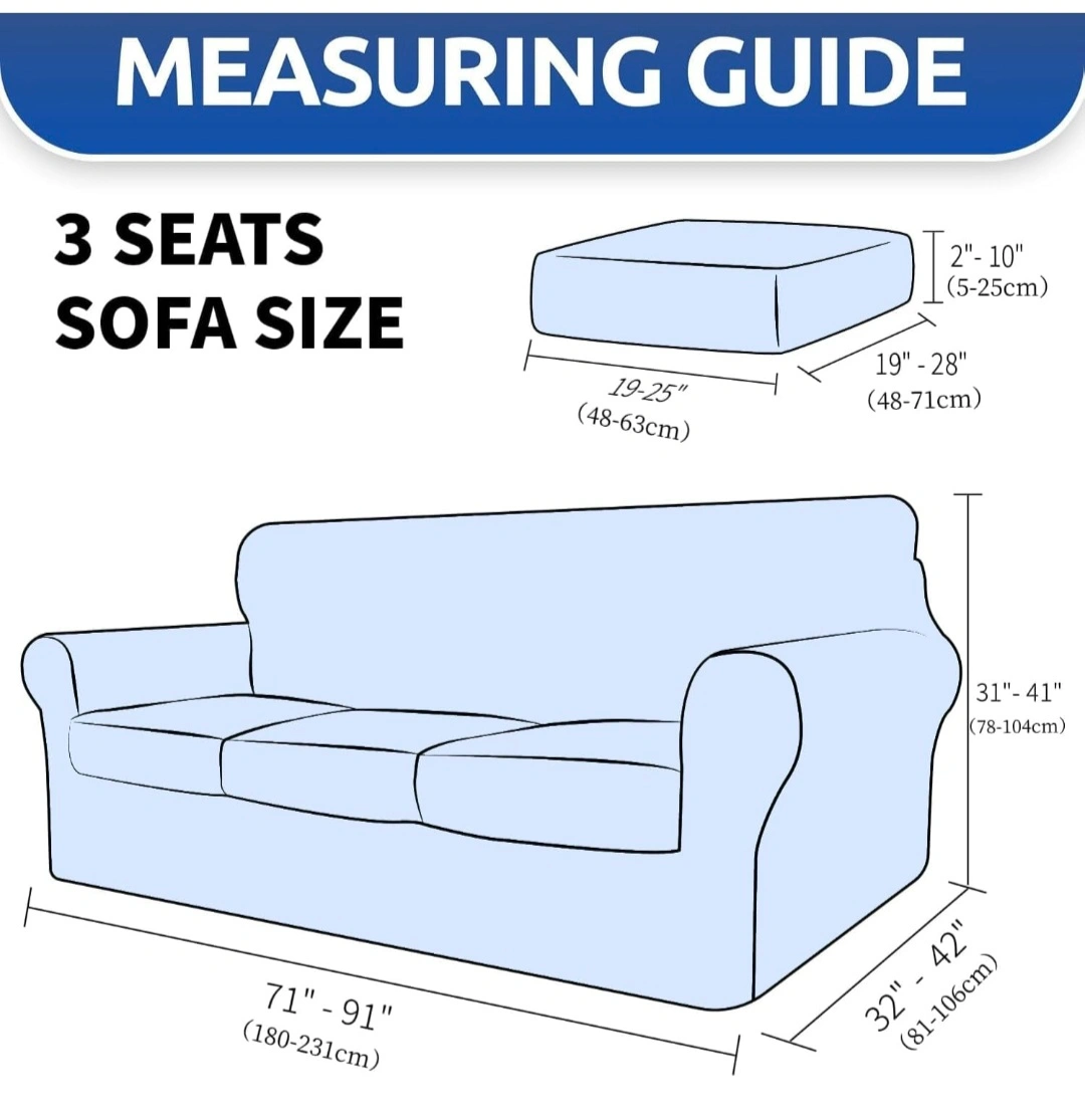 70Freshen up your living room with this 4 piece sofa cover! See picture for size. The fabric is adopted to improve the couch cover more durable, skin-friendly, no pilling, no fading, soft and comfortable, it is very breathable in summer, also suitable for all year round use. Comes with 1 couch slipcover and 3 cushion covers, highly recommended for sofas with removable cushions. Machine washable for easy care.