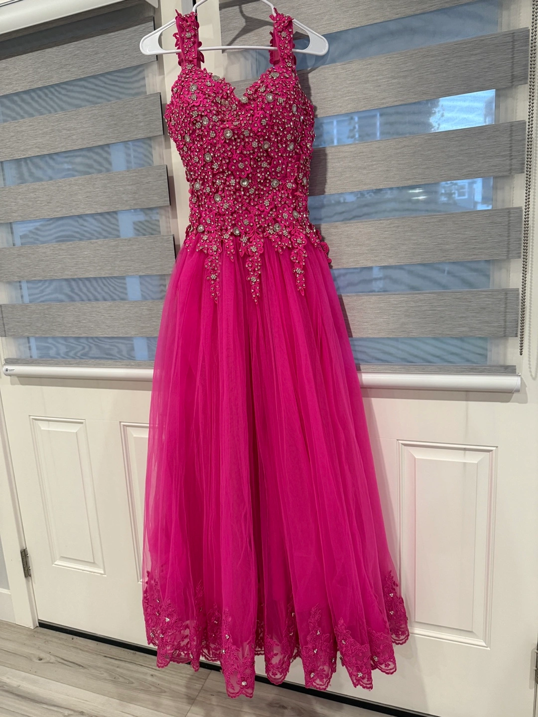 Selling a beautiful pink formal dress. It features delicate embellishments and a tulle skirt. Perfect for a special occasion!