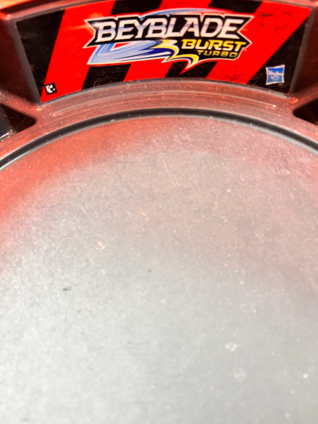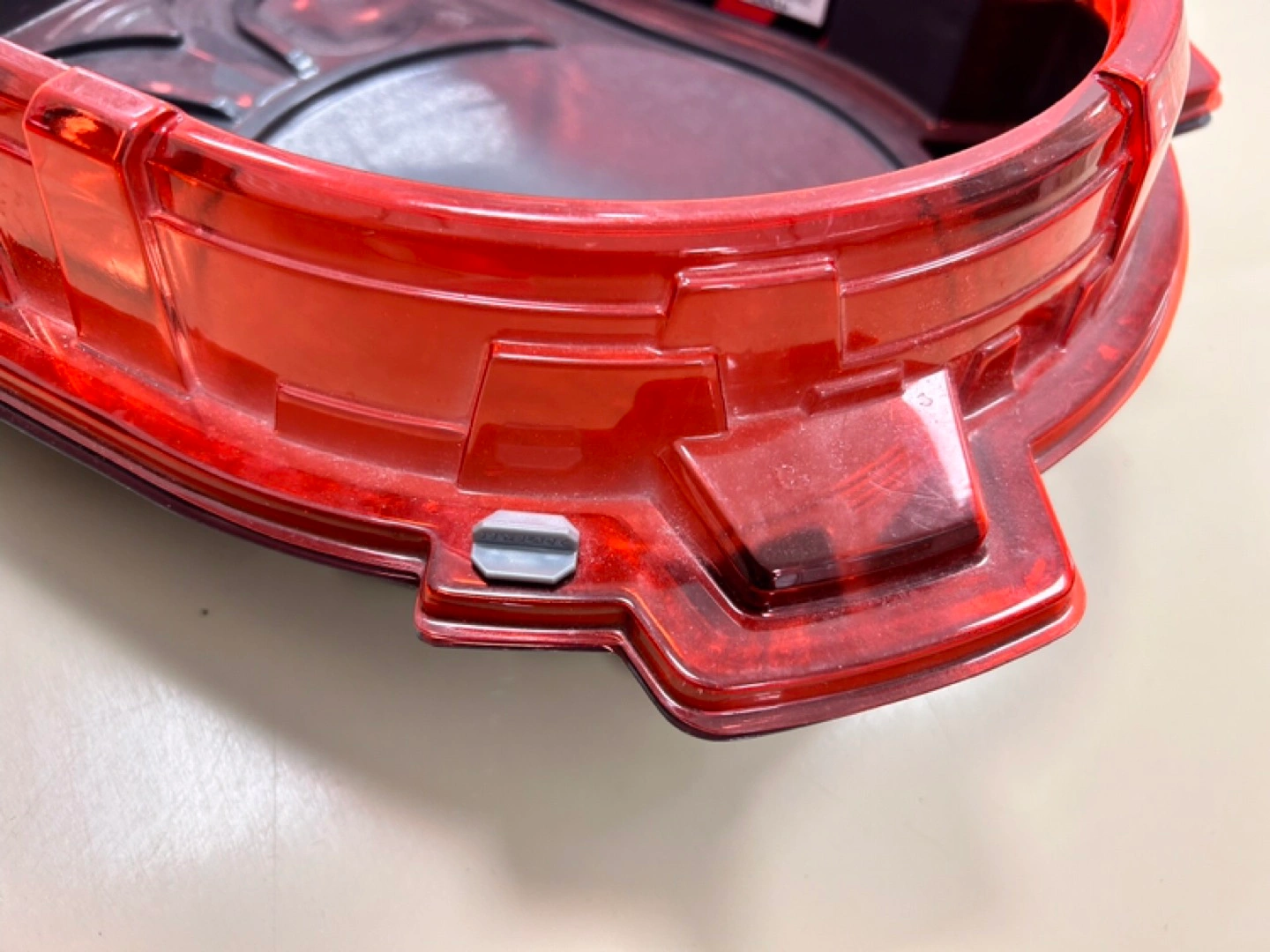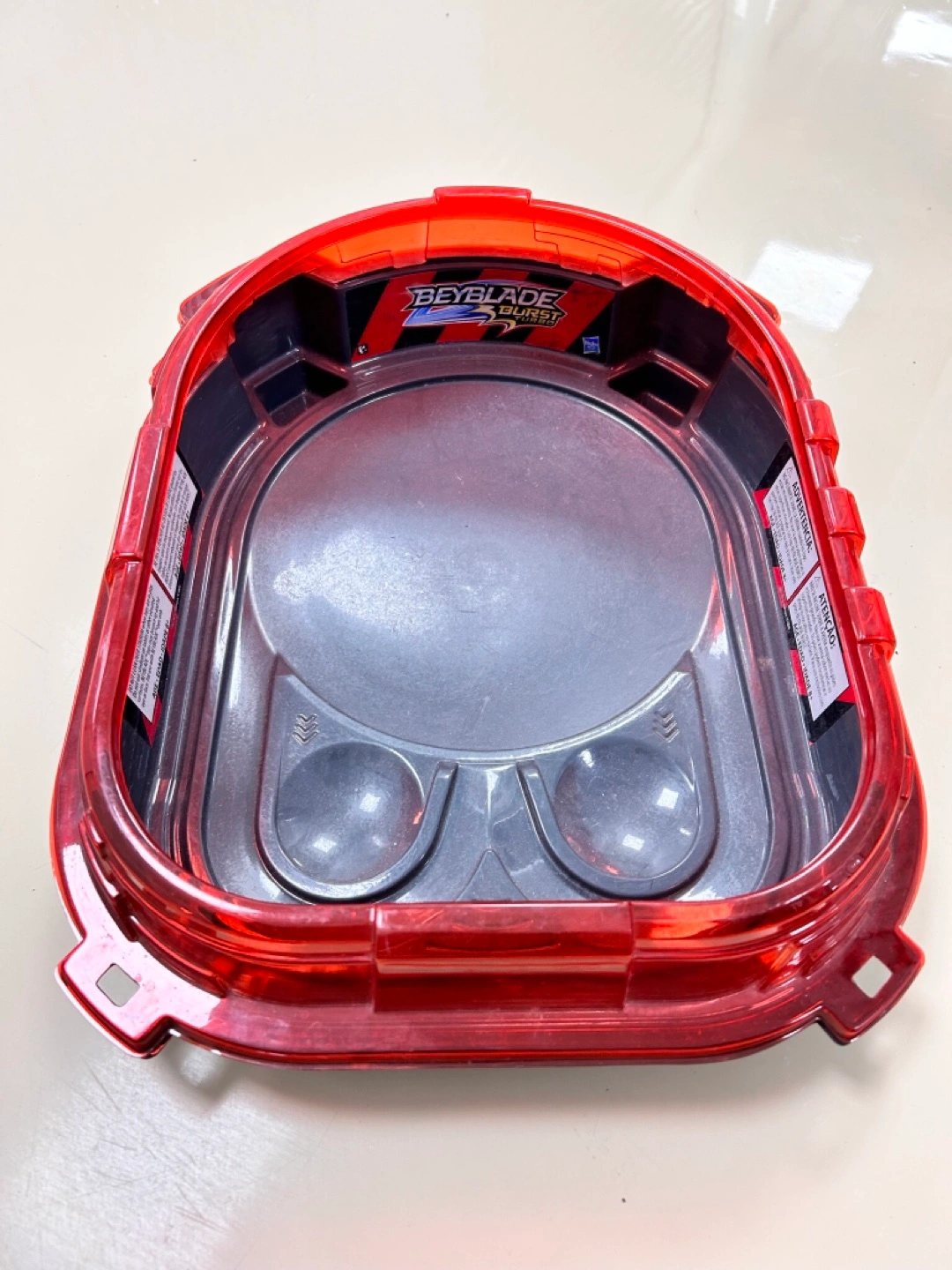 The yellow Turbo Burst Evolution Stadium and the red Beyblade Burst Turbo Stadium.