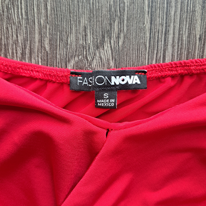 This is a Fashion Nova red bodysuit in size small. It's in great condition and ready for a new home! The material is soft and comfortable, perfect for a night out or a casual day. It features a stylish design that will surely turn heads