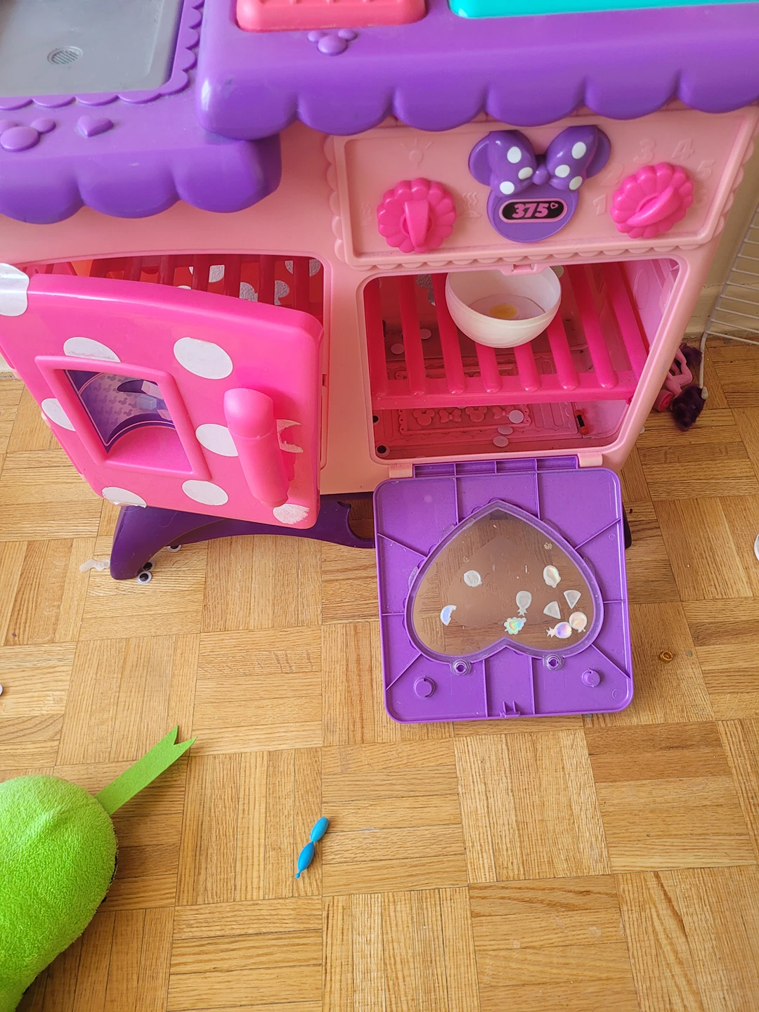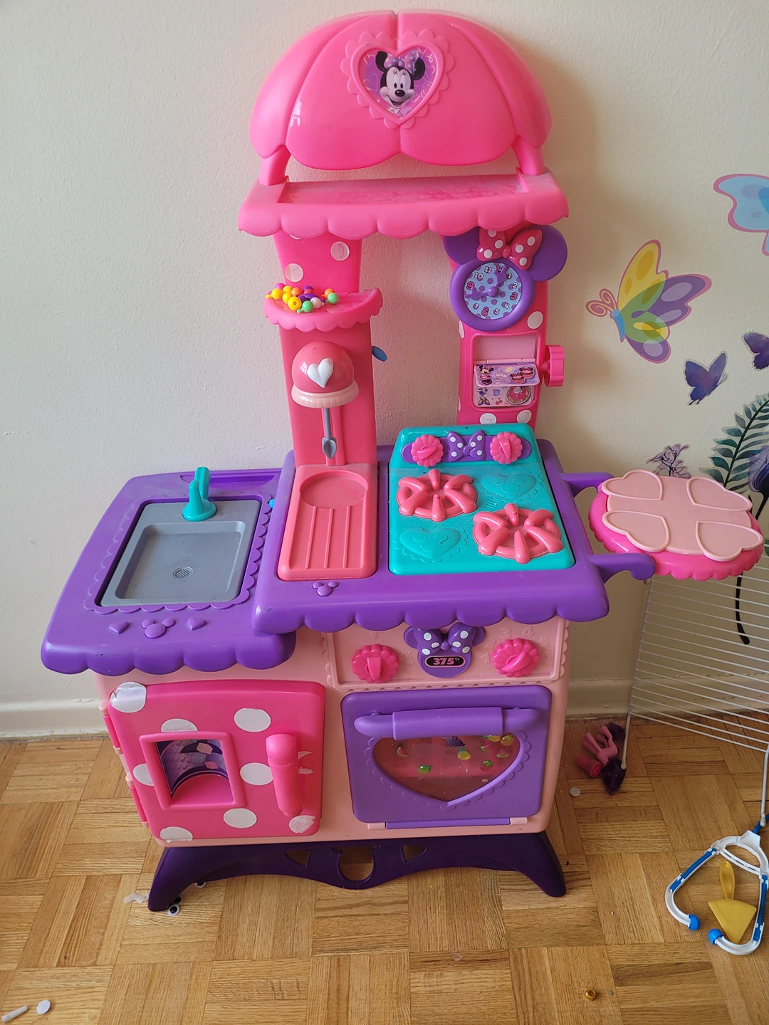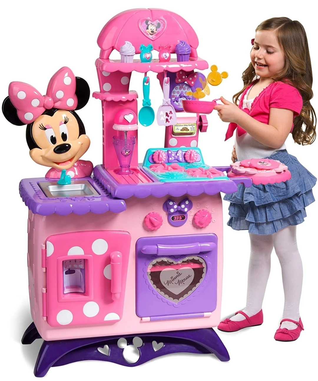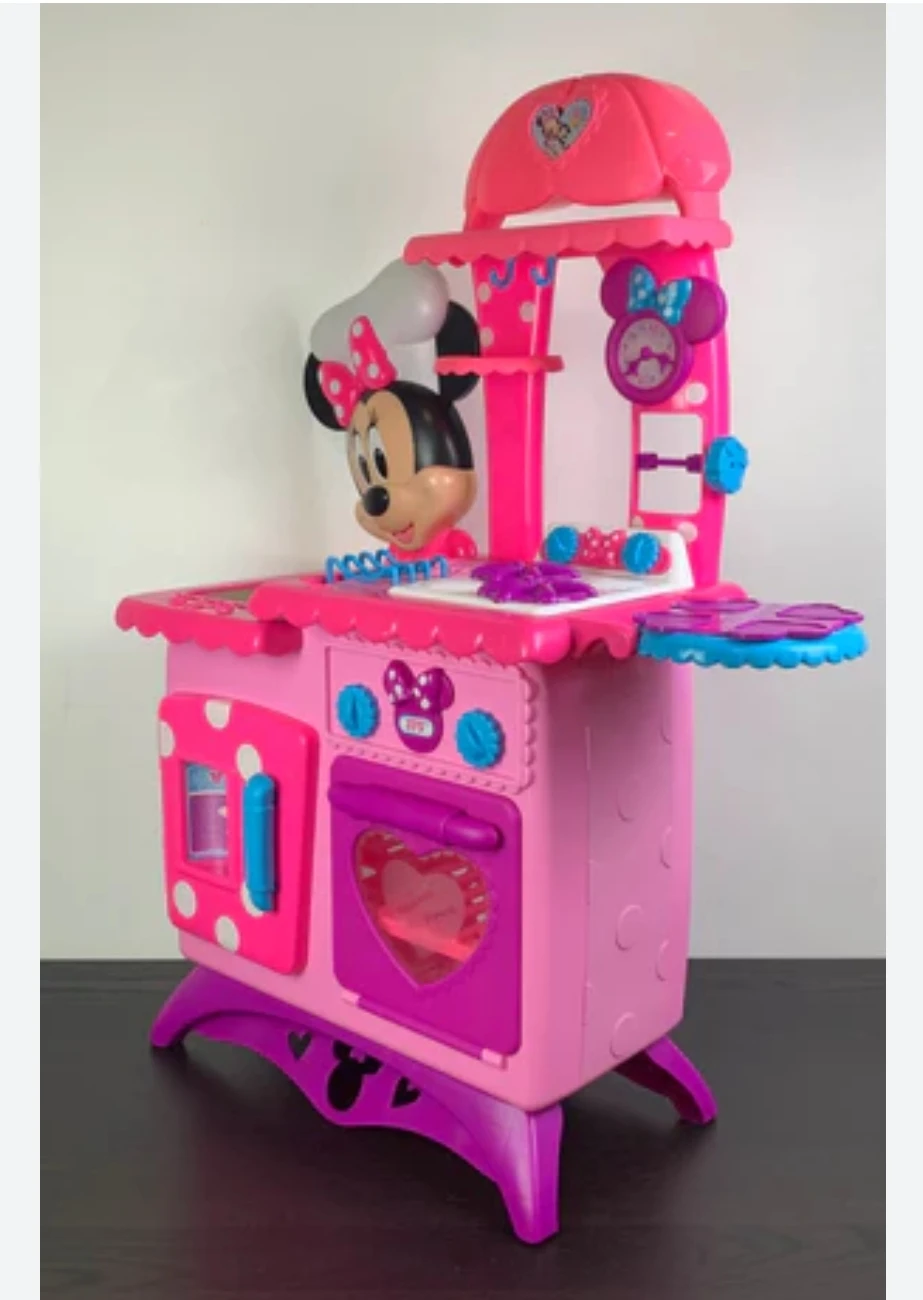 From Disney Junior’s Minnie, the Flipping Fun Kitchen comes with so many bowriffic features! Minnie fans can enjoy four fun flipping actions, including a cutting board that flips to reveal a hidden sink and a dish rack that flips to reveal a secret milkshake maker! There's even a flipping recipe wheel filled with all of Minnie's favorite recipes, and a special frying pan that "flips" a Mickey-shaped pancake! Minnie's Flipping Fun Kitchen also makes realistic cooking sounds!