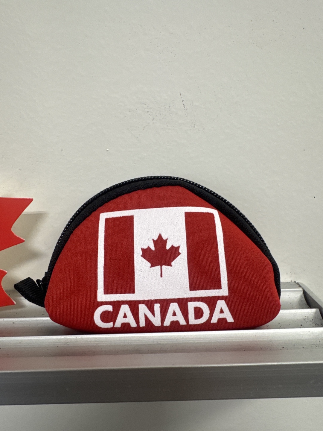 A cute little coin purse with the Canadian flag on it! Perfect for keeping your change organized or for showing off your Canadian pride