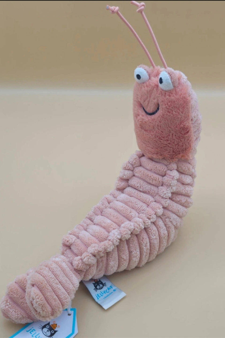 138This is a super cute Jellycat Shrimp Cordy Roy plush toy! It's in great condition and ready for a new home. Perfect for kids or anyone who loves adorable plushies!