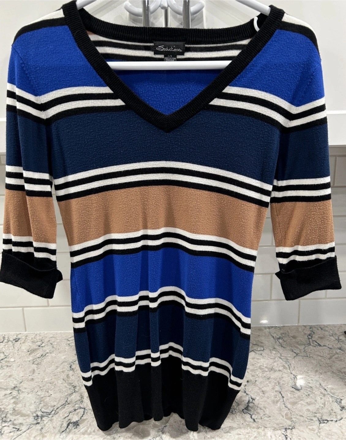 Womens Striped 3/4 Length Sleeve Dressy/Casual Sweater Top