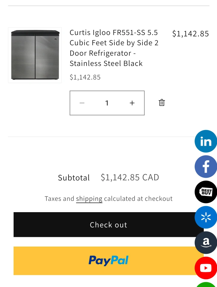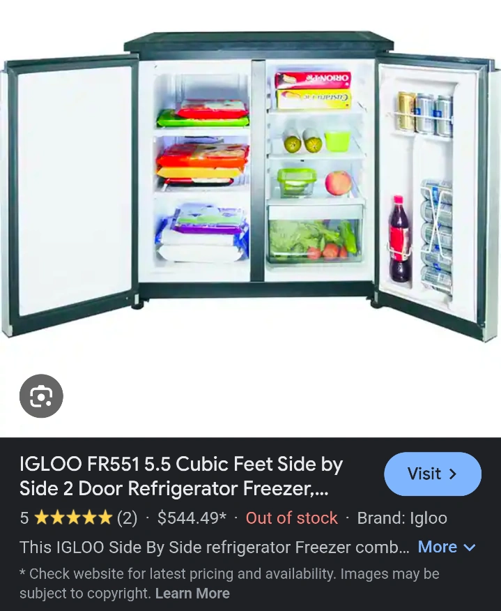 Selling a Stainless Steel Igloo Side by Side Refrigerator/Freezer, model FR551. It works perfectly and is in decent shape with only small cosmetic defects (small dents, crisper drawers are cracked on the bottoms).. Originally paid approx. $550 from Costco. Current online prices shown for comparison.