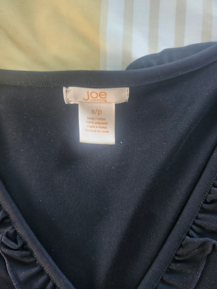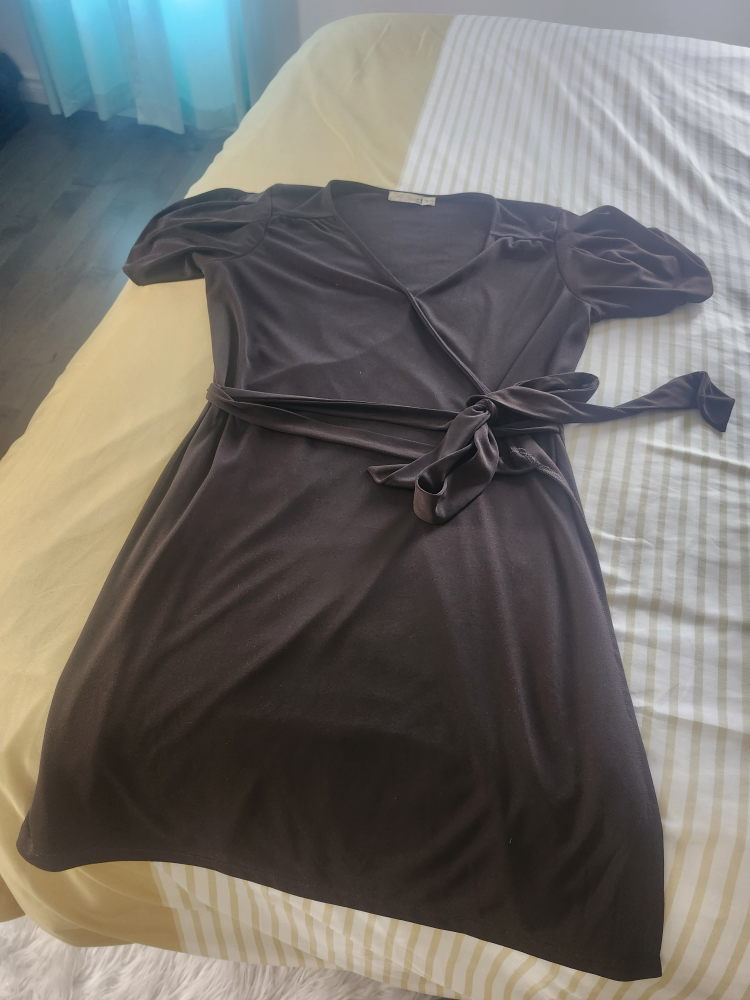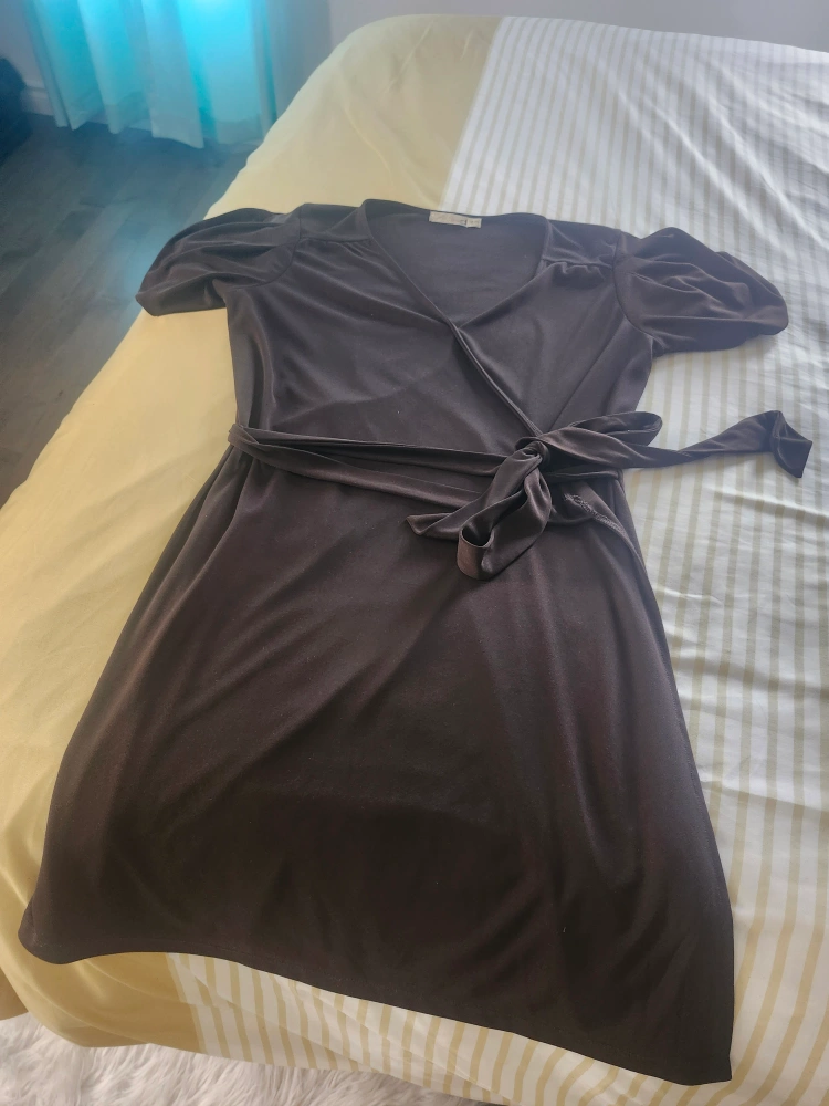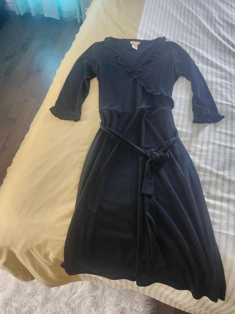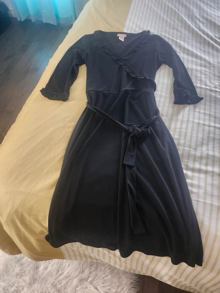 A lovely black wrap dress from Joe! It's a size small. The dress is made of 100% polyester and features a tie at the waist for a flattering fit
